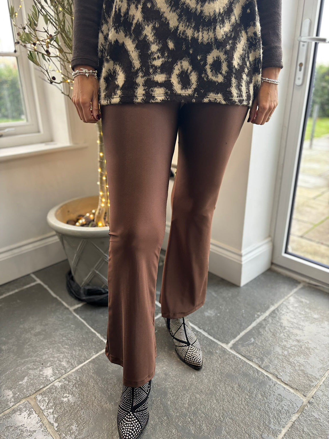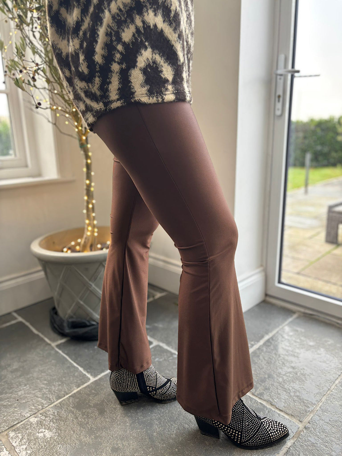 High Waist Flared Leggings Elevate your everyday comfort with these high-waisted flared leggings, crafted from a stretchy lycra-style fabric that moves with you. The soft, skin-friendly material provides all-day wearability, while the bootcut silhouette offers a flattering, modern fit. The high waist design ensures a secure, supportive feel that keeps you confident through any activity.