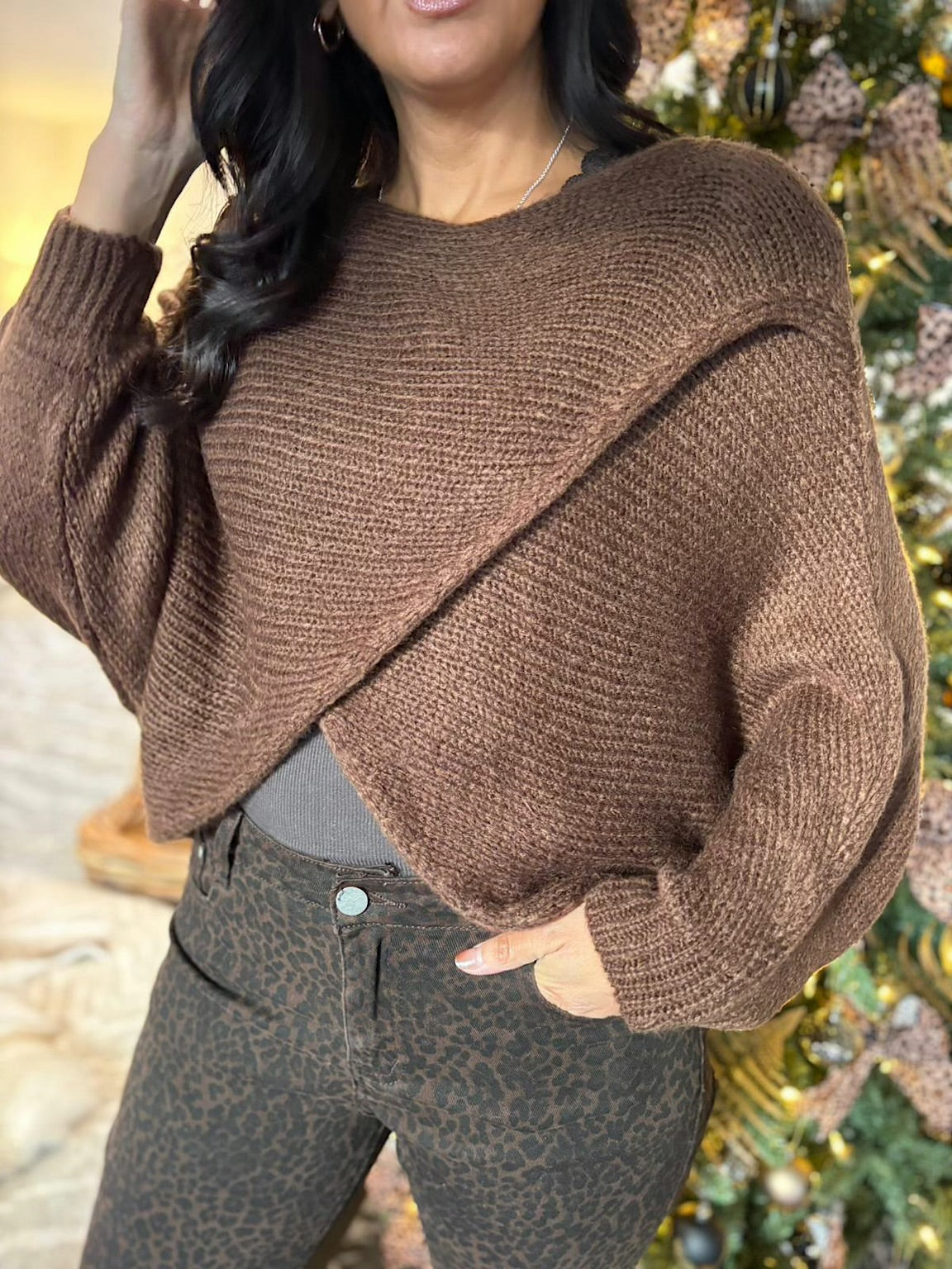 This knitted wrap jumper offers a refined style with its soft, comfortable fabric, making it an ideal choice for layering. Its elegant design enhances any outfit while providing warmth and versatility throughout the seasons.