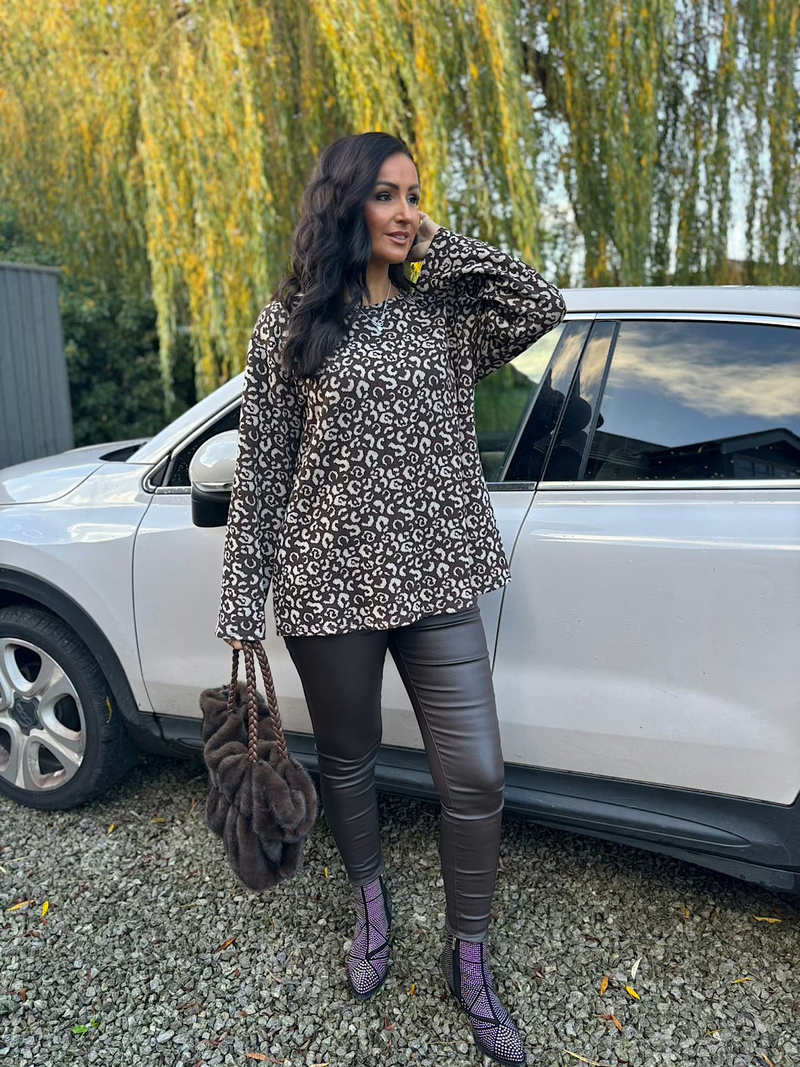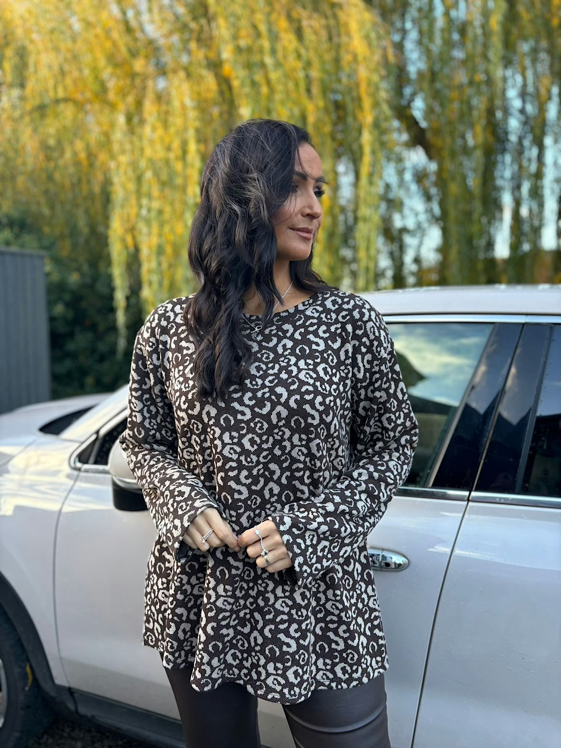 This knitted long sleeve top features a stylish leopard design that adds a touch of boldness to your wardrobe. Crafted in a soft fabric, it offers both comfort and warmth for cooler days. The flattering fit make it a versatile piece that supports your everyday style with effortless confidence.
