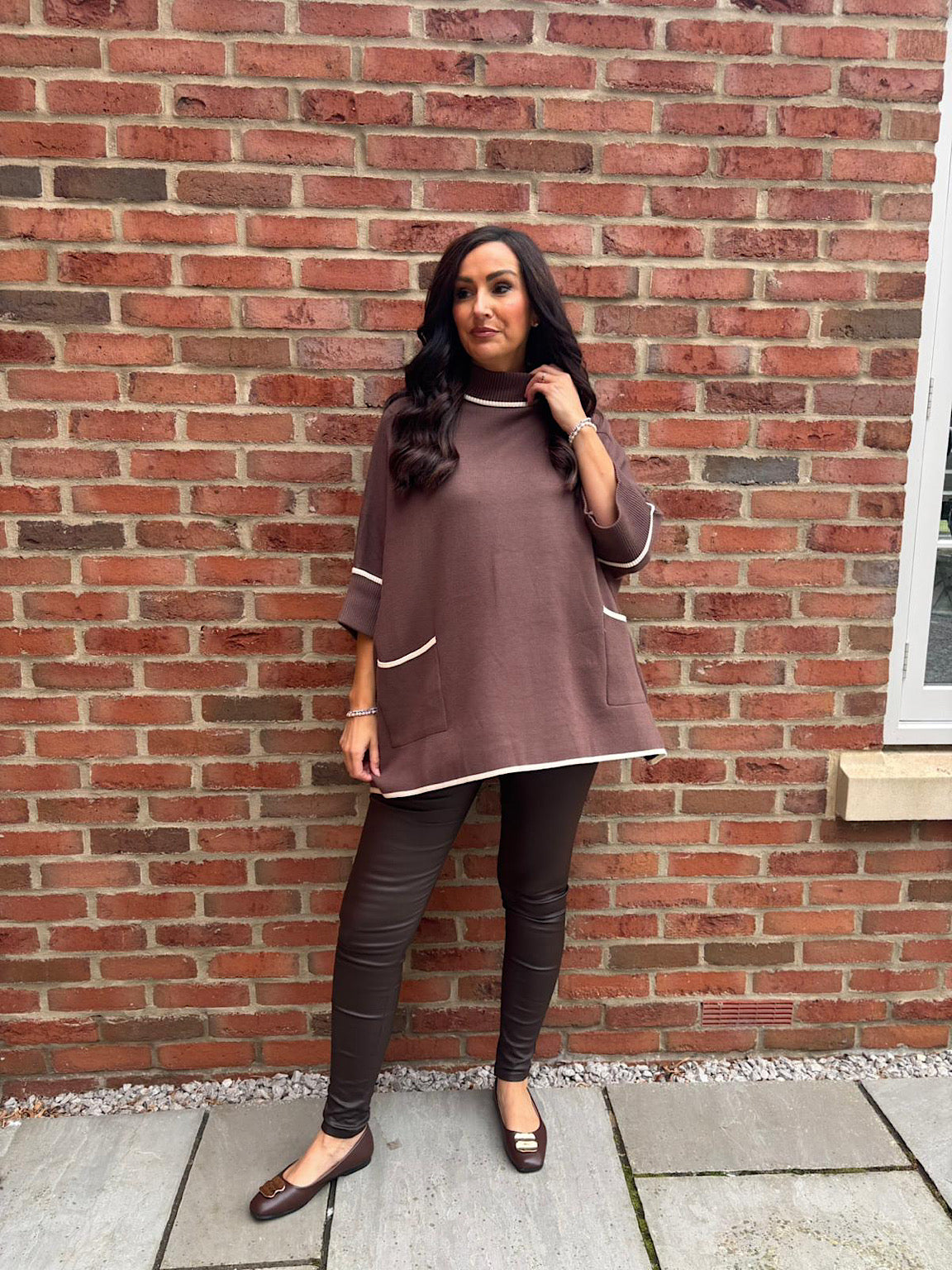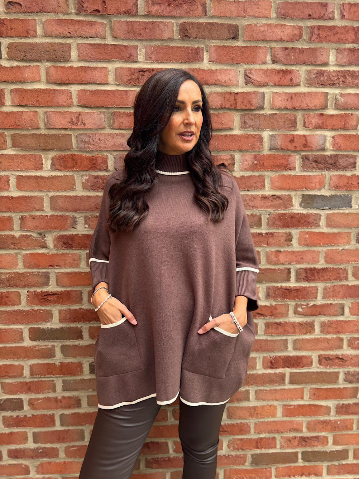 Chocolate Luxury Trim Detail Pocket Knit Anna