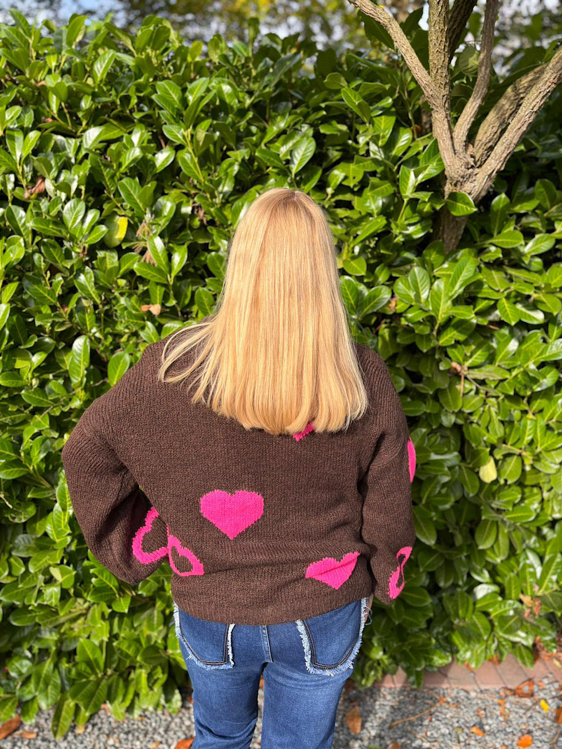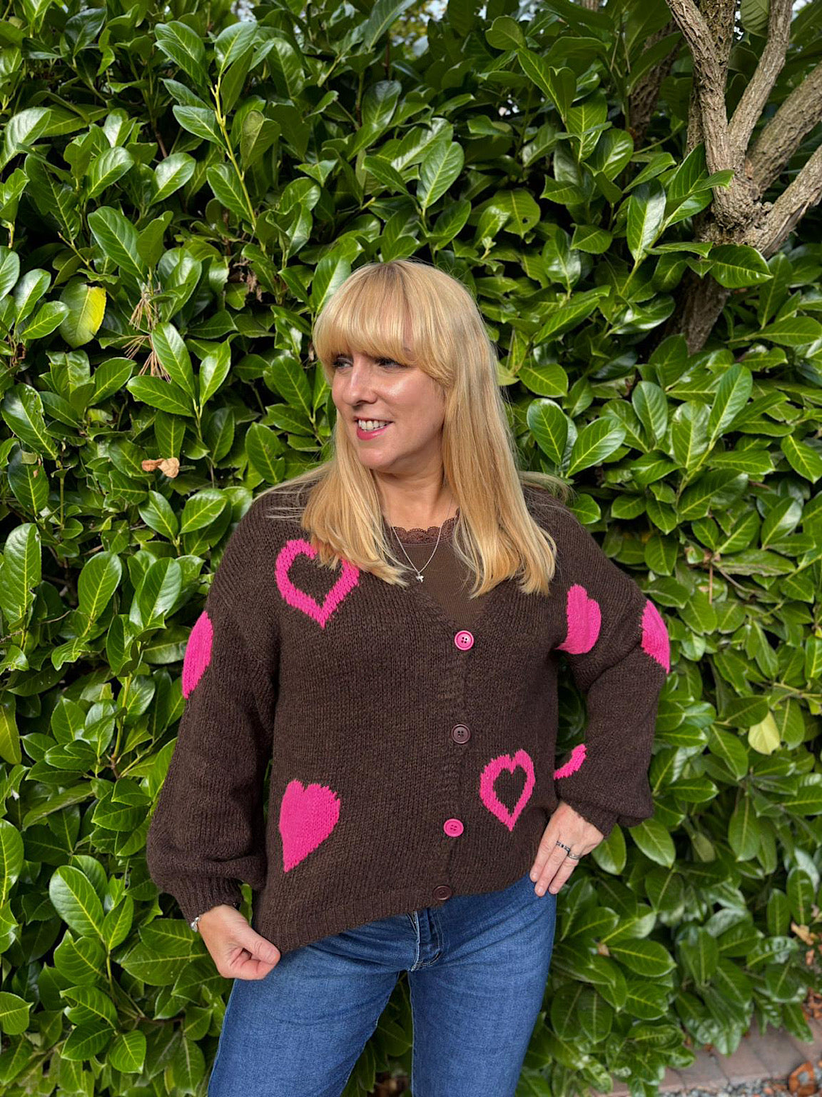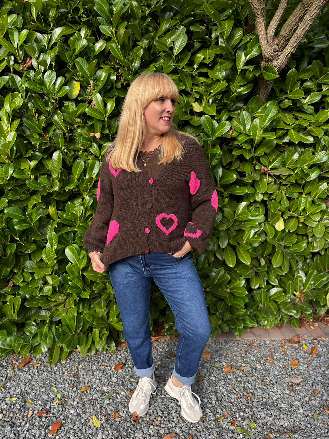 This Heart Knit Cardigan Denise offers a soft, cosy feel perfect for staying warm in style. Crafted from quality knit fabric, it features a charming heart pattern and a convenient button closure for easy layering. Ideal for adding a touch of comfort and warmth to your everyday wardrobe.