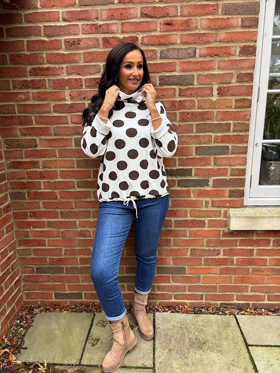 Chocolate Polka Dot Super Soft Sweat Top Lisa