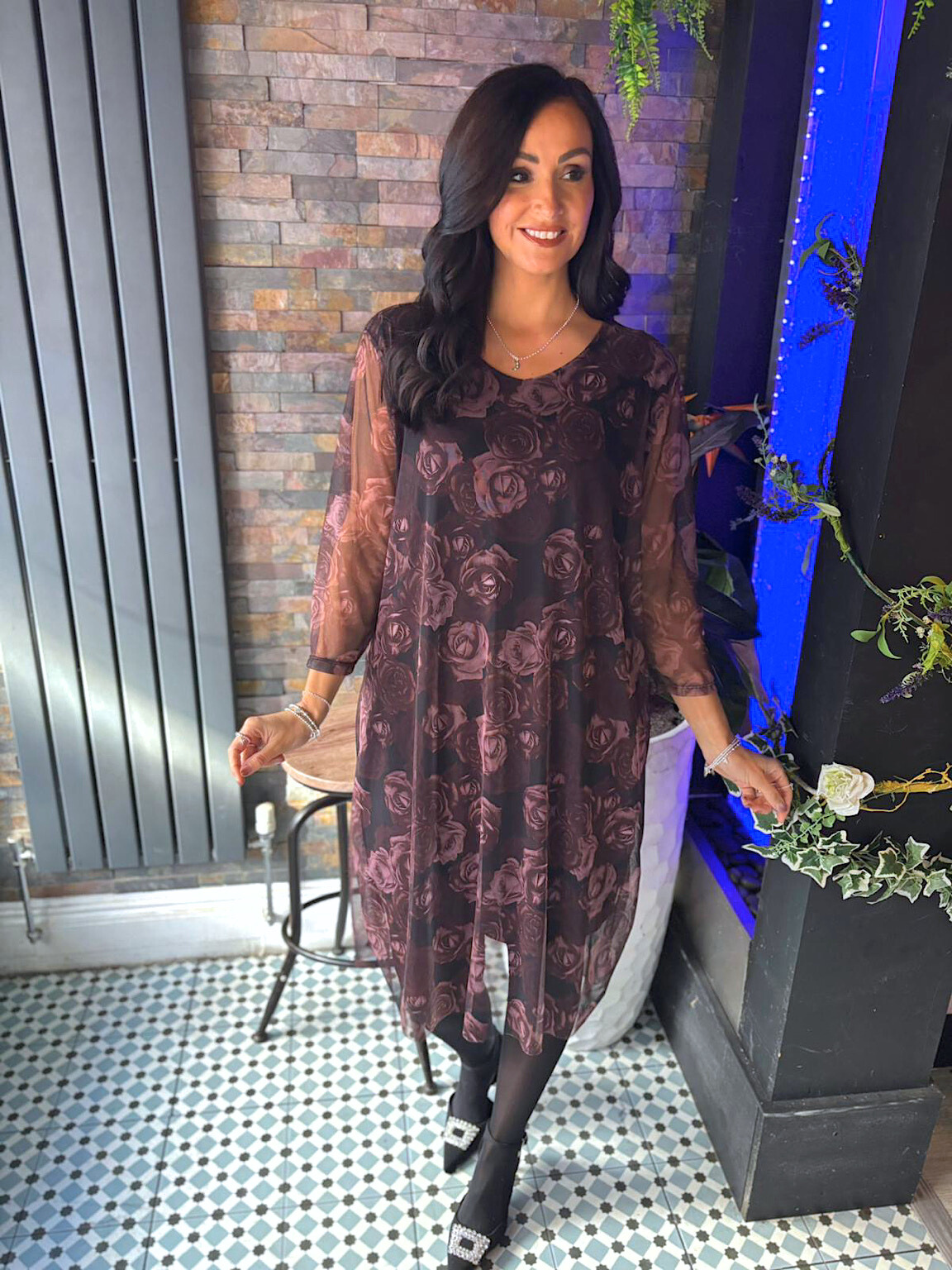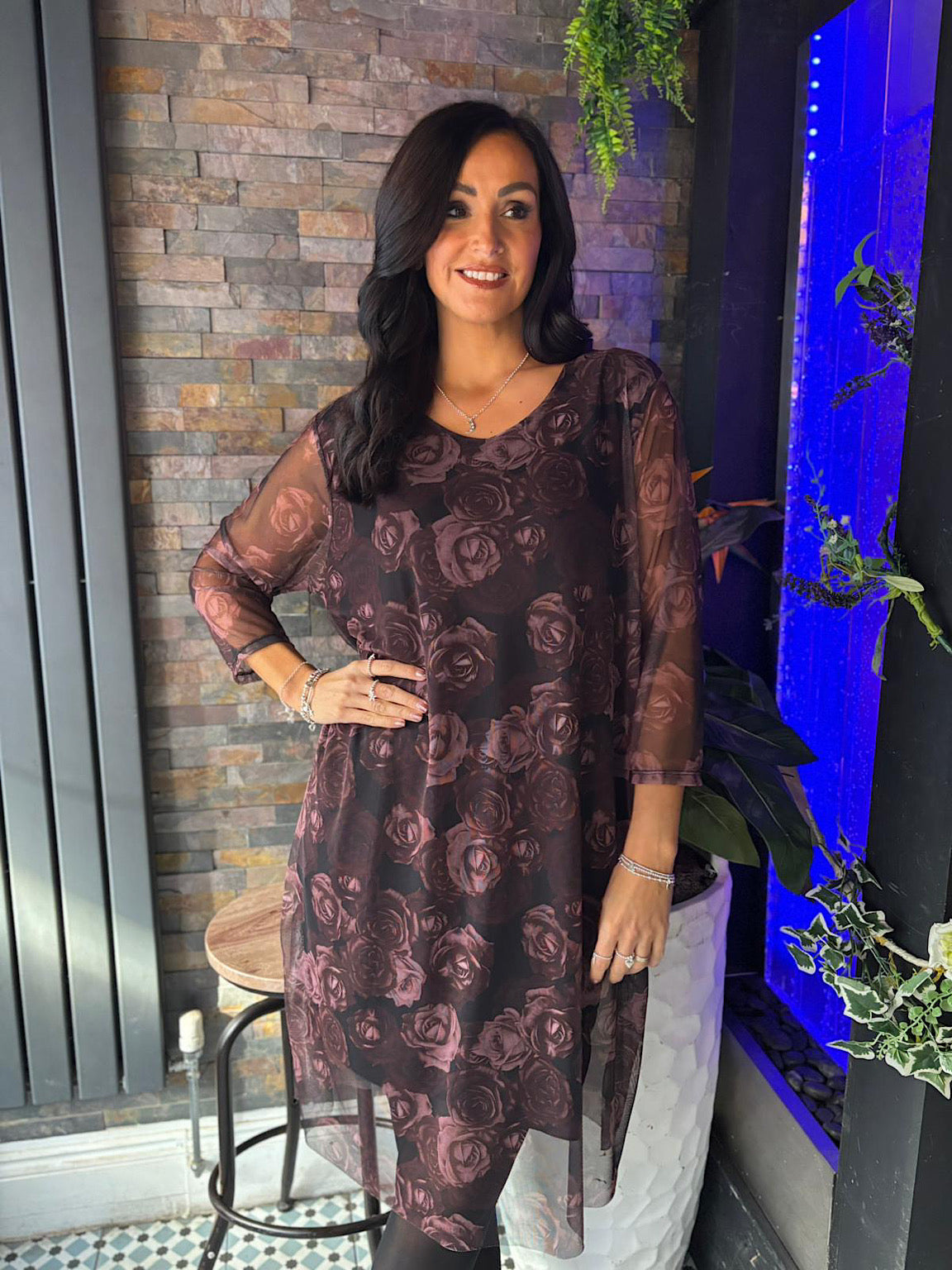The Rose Mesh Dress Natalie blends delicate elegance with a striking rose pattern, perfect for making a memorable impression at any party. Its lined mesh fabric offers both comfort and a flattering fit, ensuring you feel confident and classy throughout the event. Designed to stand out while providing ease of wear, this dress is an ideal choice for special occasions where sophistication meets style.