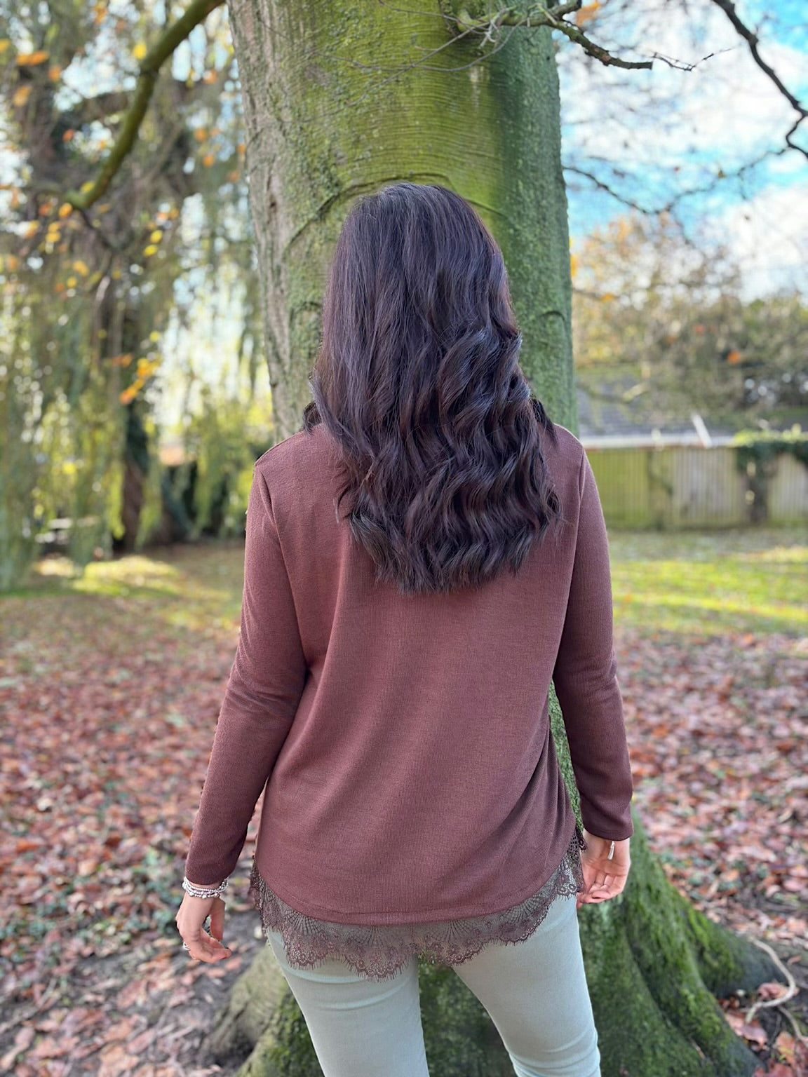 Embrace effortless elegance with this long sleeve top, designed to flatter and comfort. The super soft fabric feels luxurious against your skin, while the ruched detailing along one side creates a flattering silhouette. Delicate lace trim at the hem adds a touch of feminine sophistication. Perfect for layering or wearing solo, Janet transitions beautifully from casual days to evening occasions. A versatile wardrobe essential that celebrates your natural beauty.