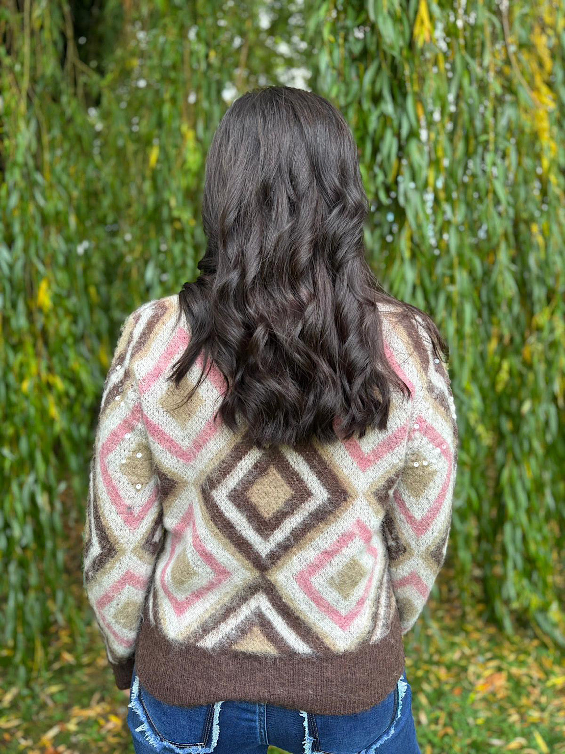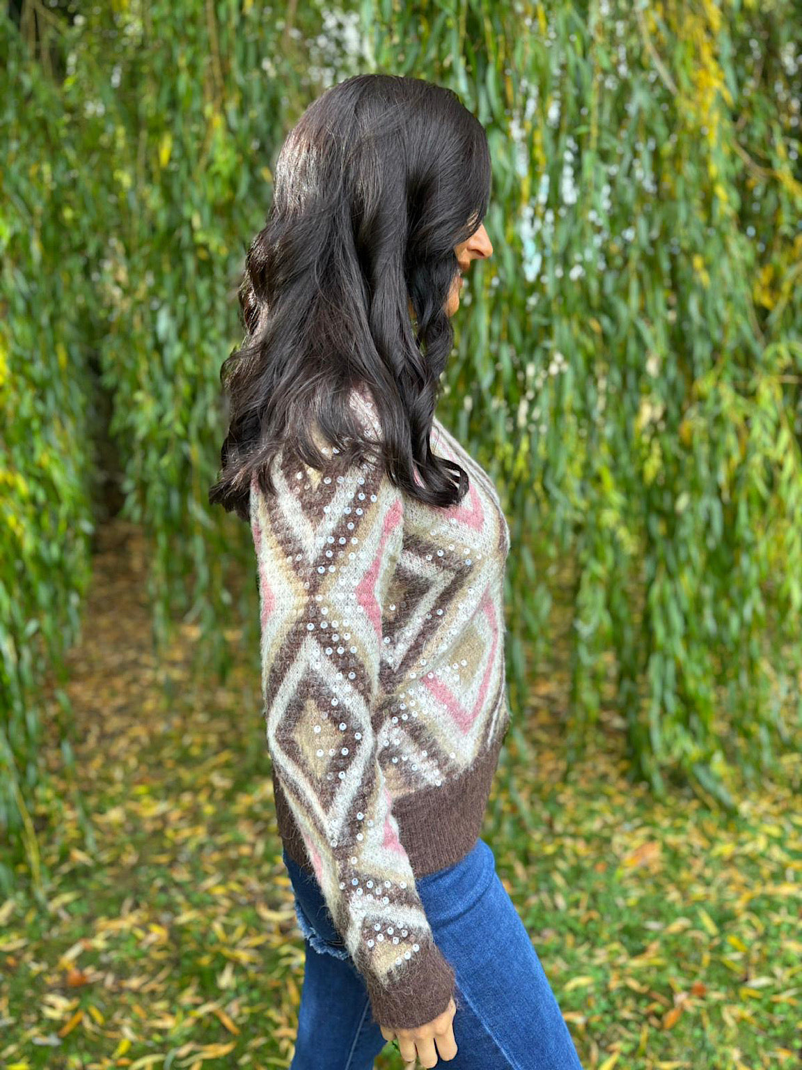 Chocolate Sequin Diamond Knit Linda