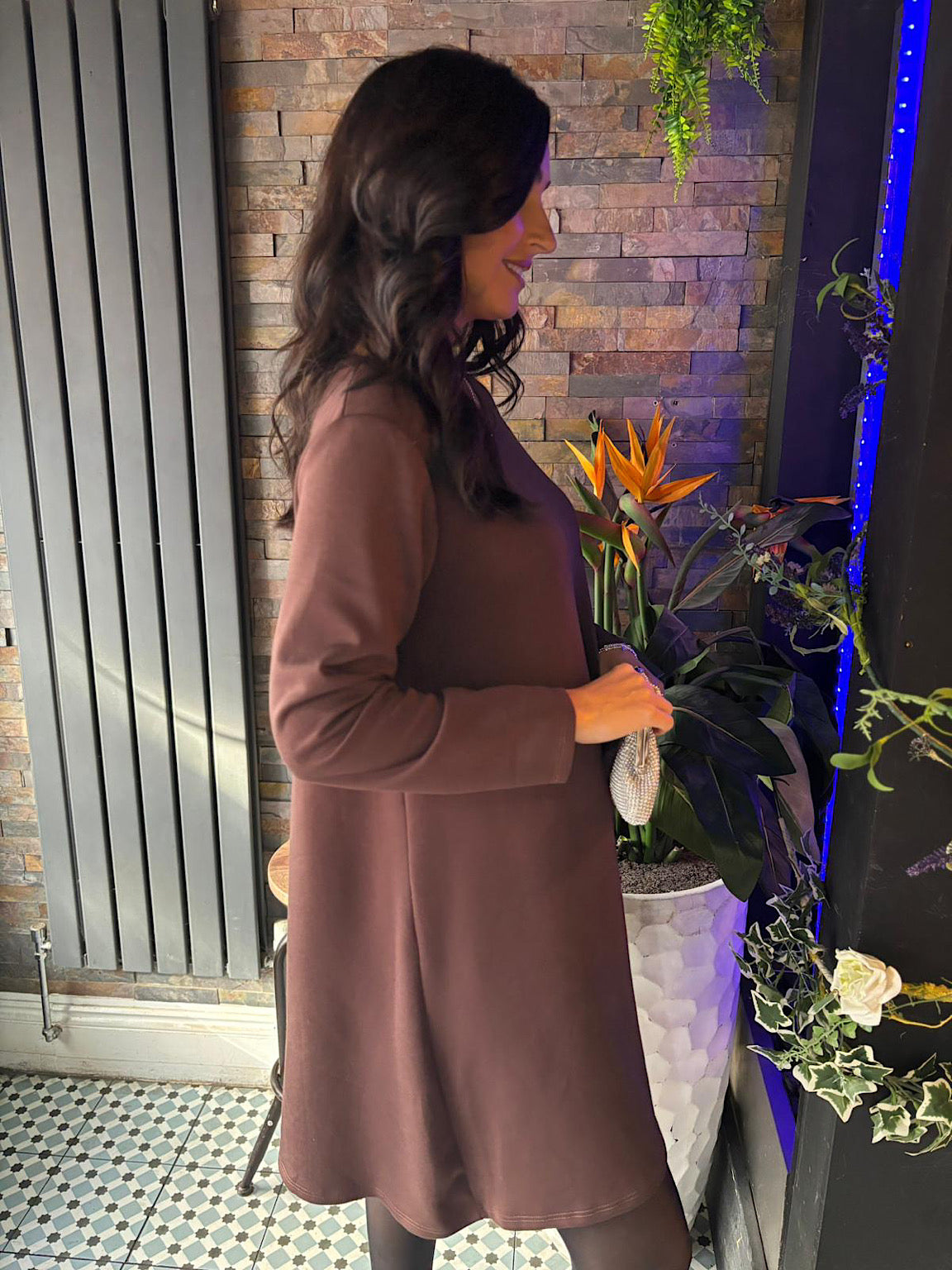 Chocolate Sequin Panel Sweatshirt Dress Olive