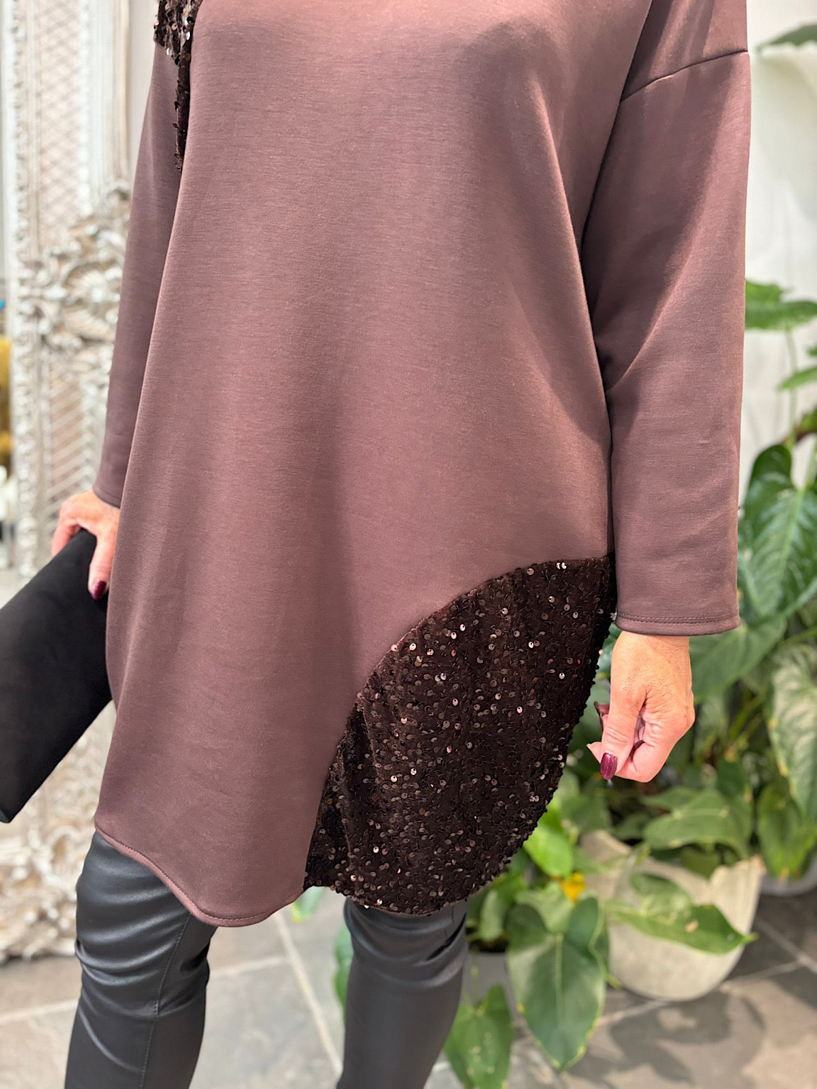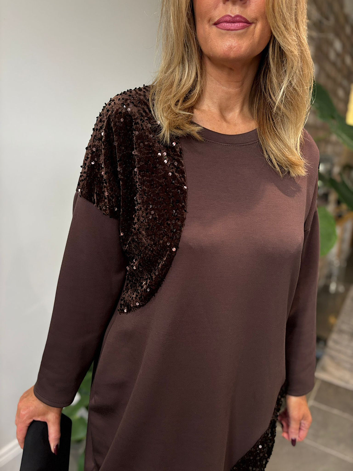 Chocolate Sequin Patch Sweatshirt Dress Mai