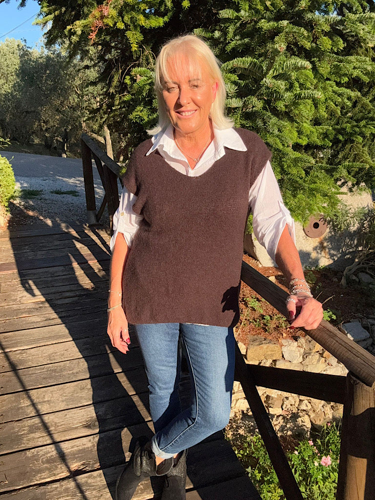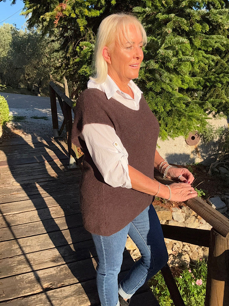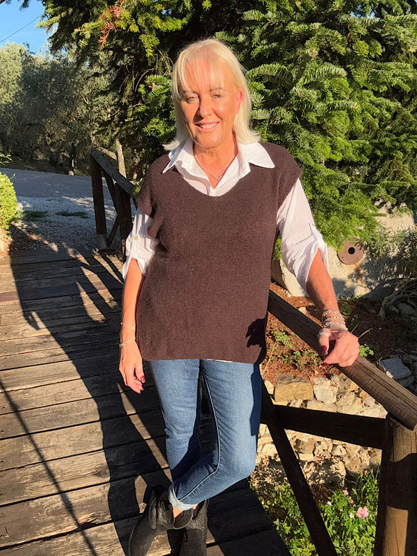 This chocolate shirt and tank two piece Gio combines style and versatility with its 2 in 1 design. Perfect for any occasion, enjoy the ease of transforming from a shirt to a tank effortlessly. Experience the comfort and sophistication this piece has to offer.