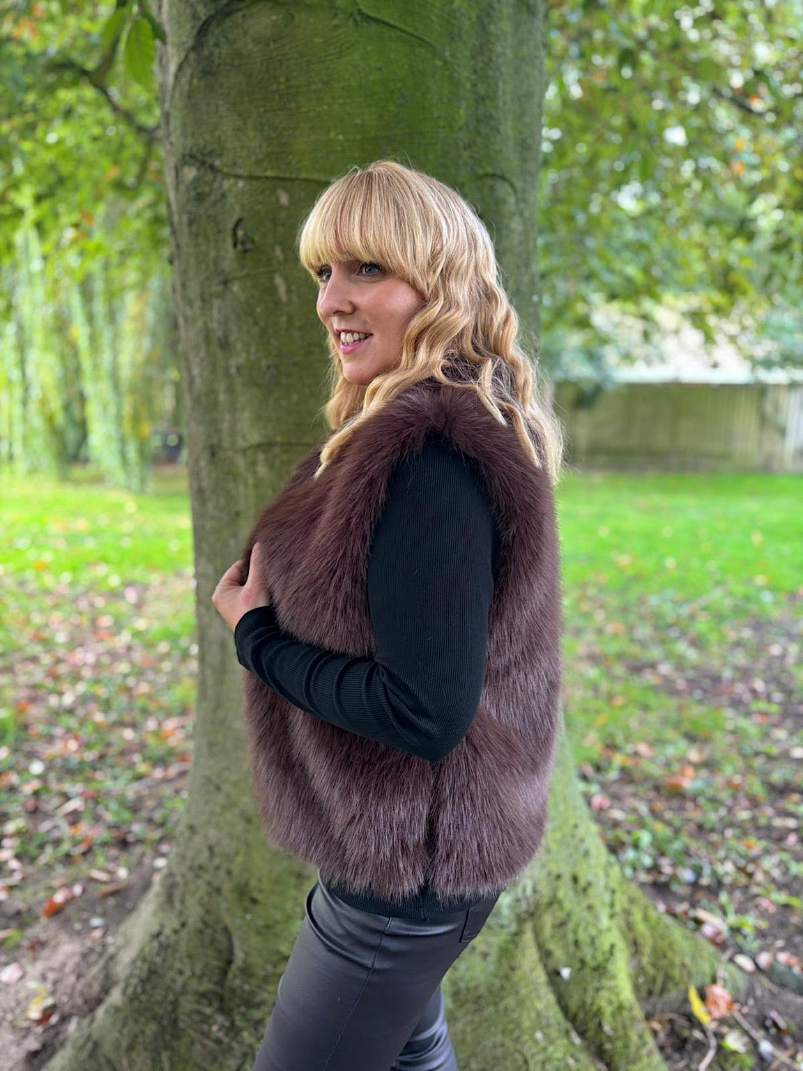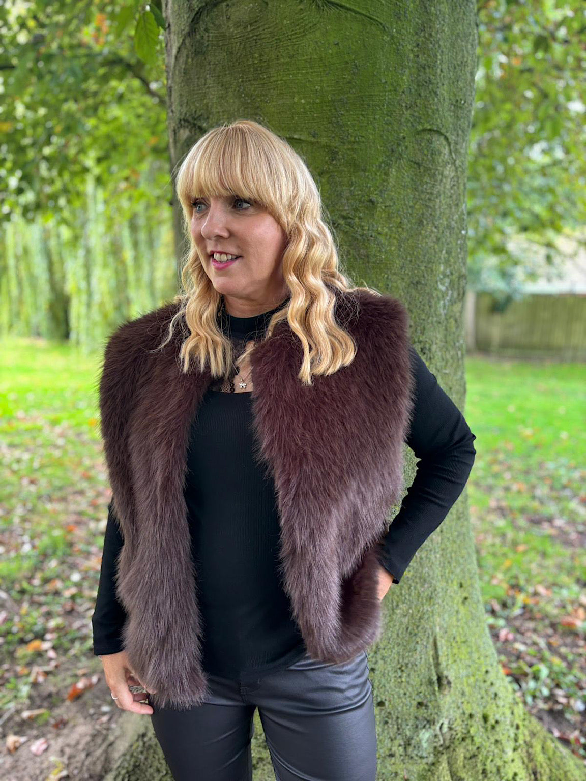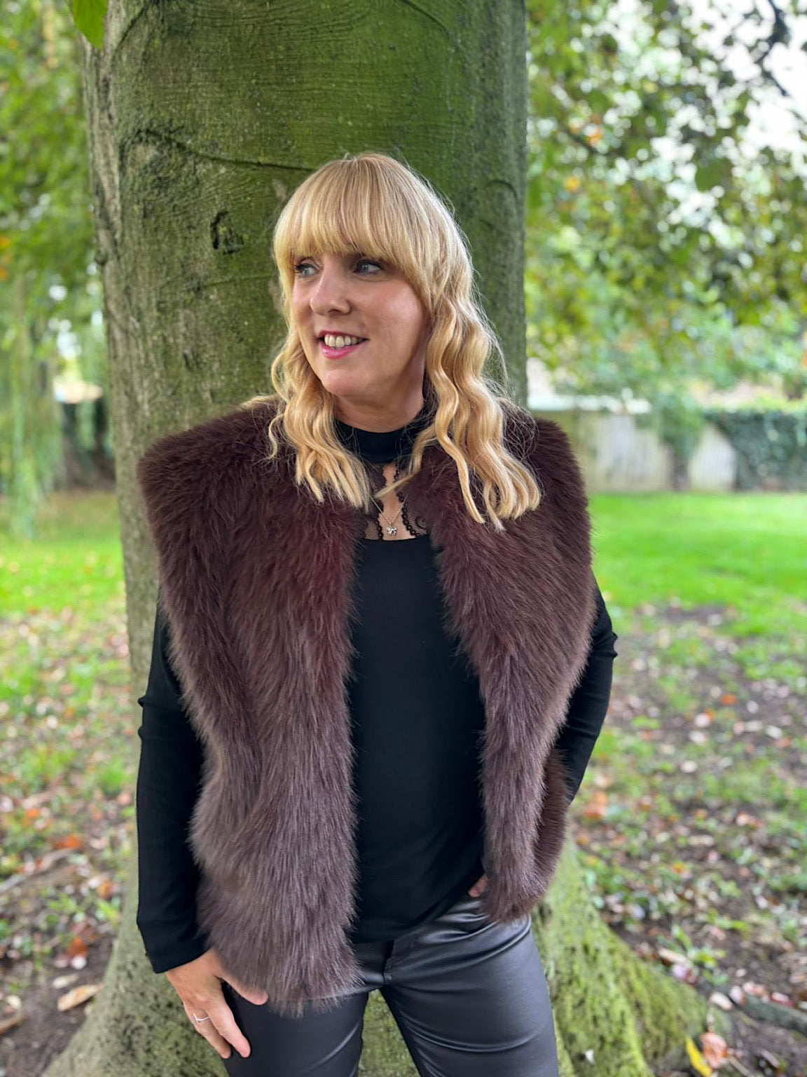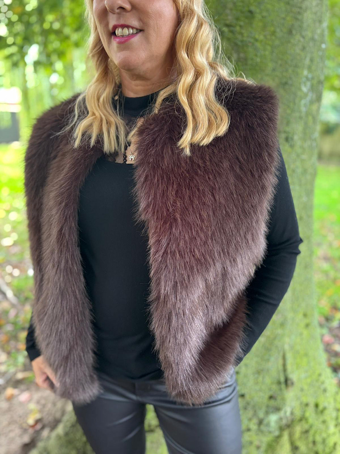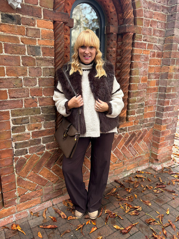 Chocolate Short Faux Fur Gilet Emmie