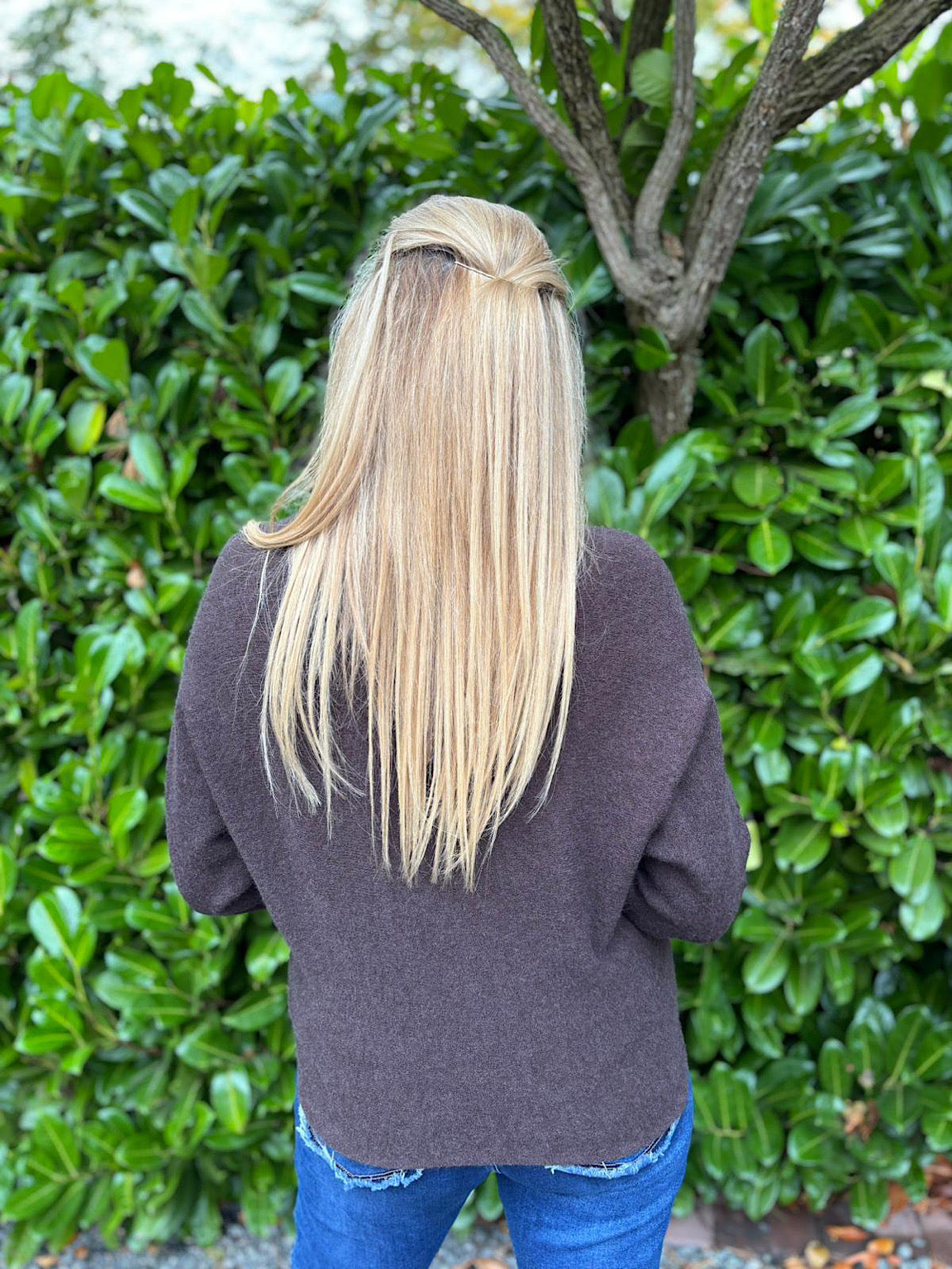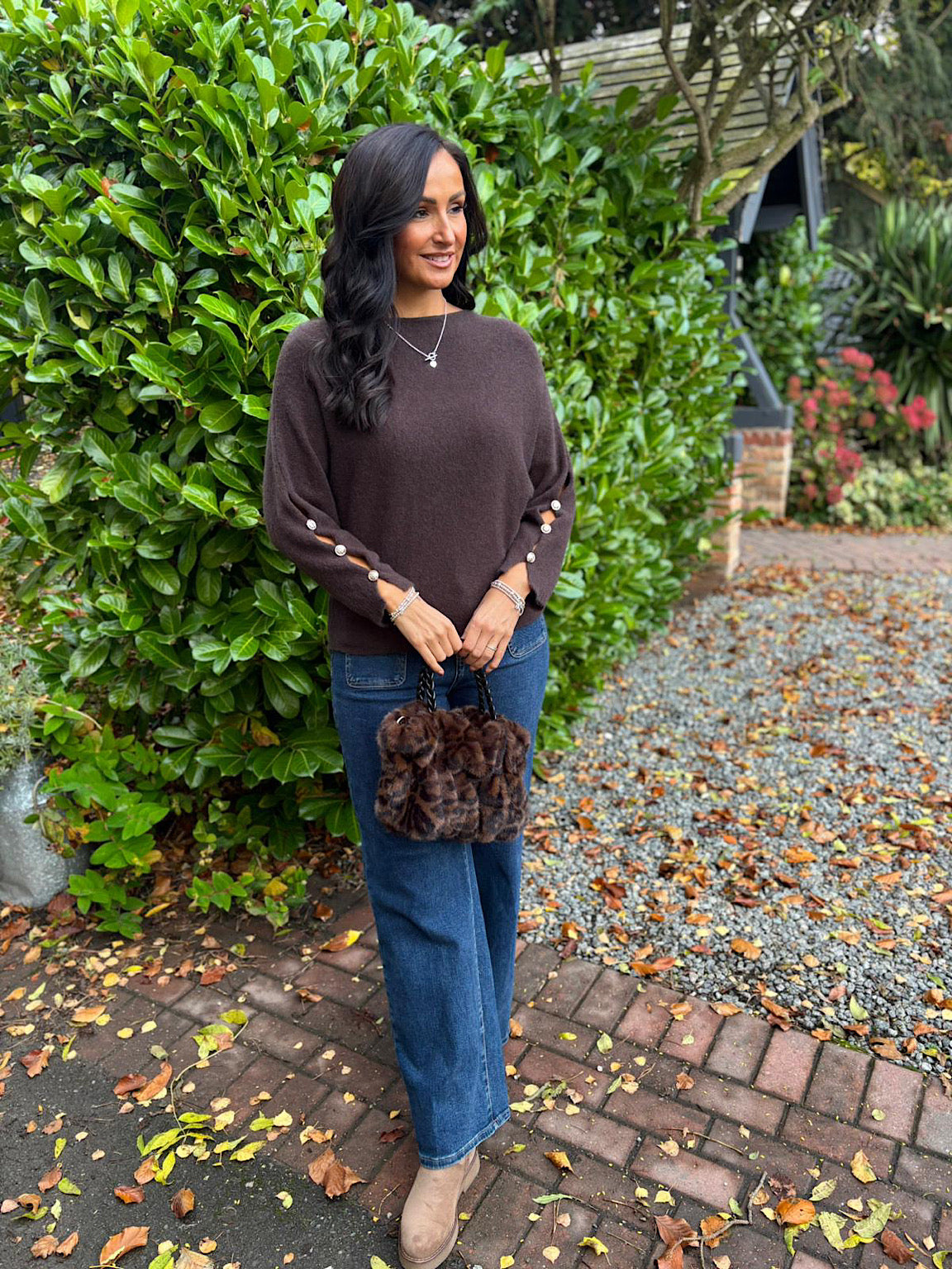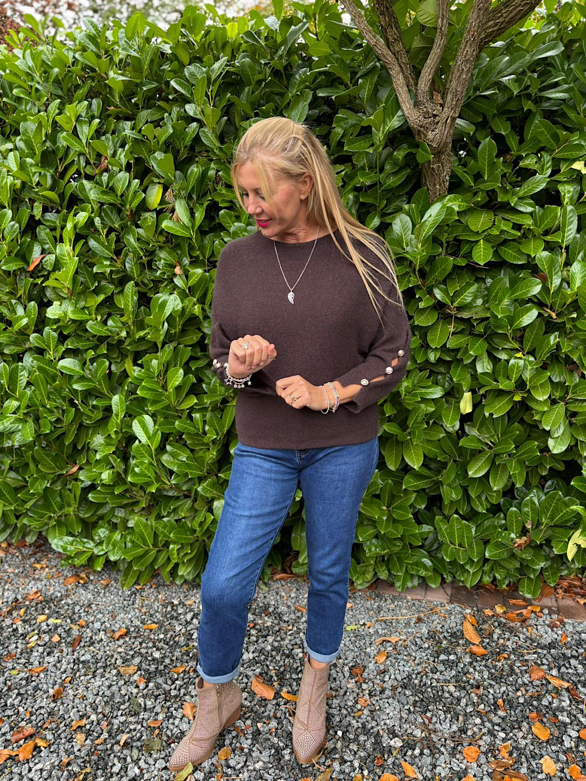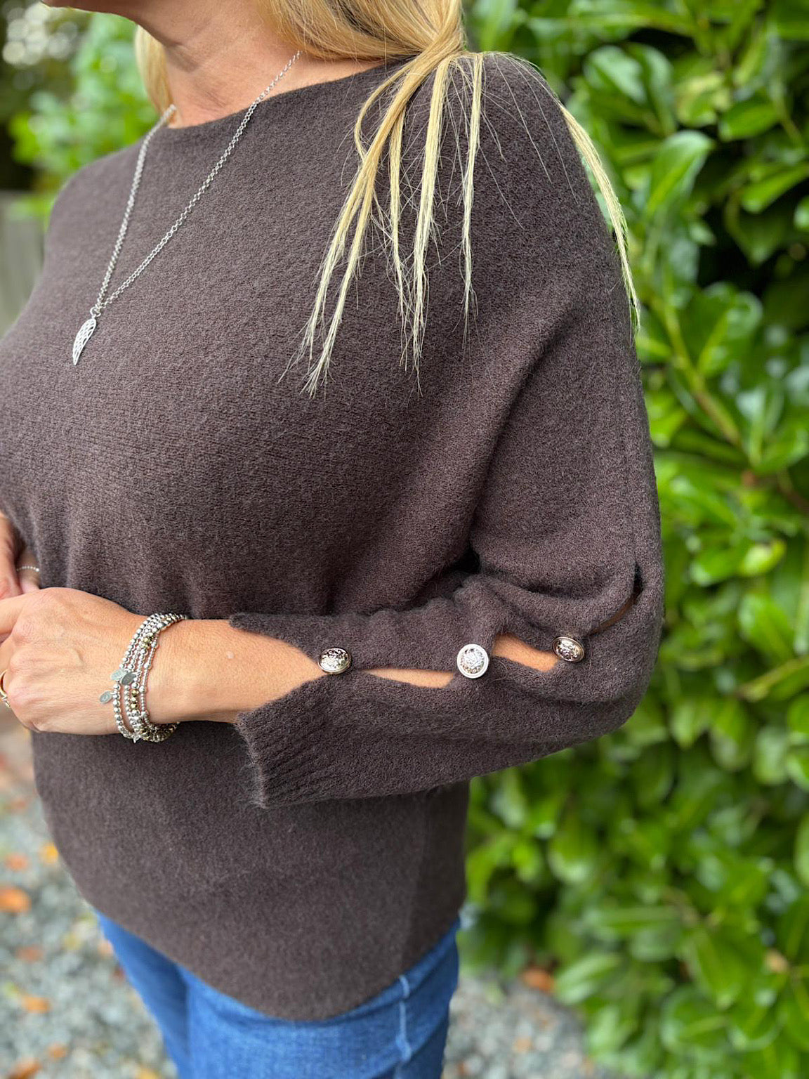 This Sleeve Detail Knit Top Julia offers a gentle, flattering fit. The delicate button detailing down the sleeve adds a subtle touch of style, making it a perfect choice for casual wear with a hint of elegance. Its soft fabric ensures you stay cosy while looking effortlessly chic.
