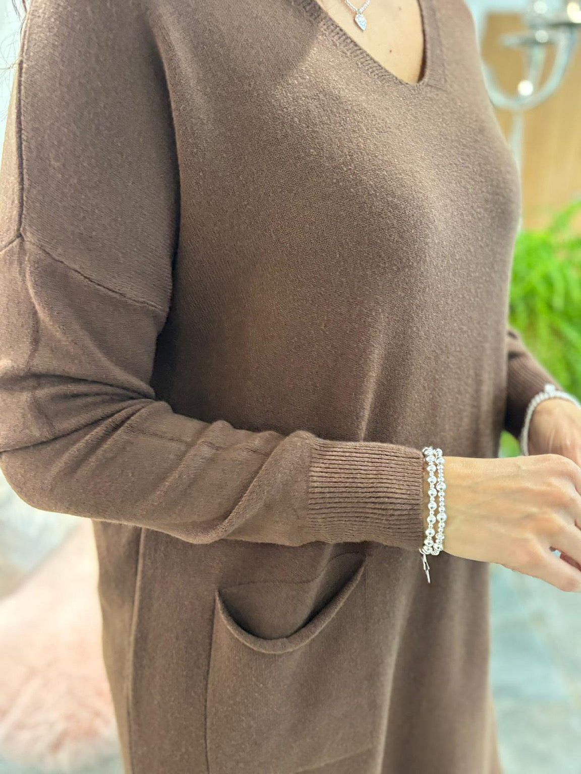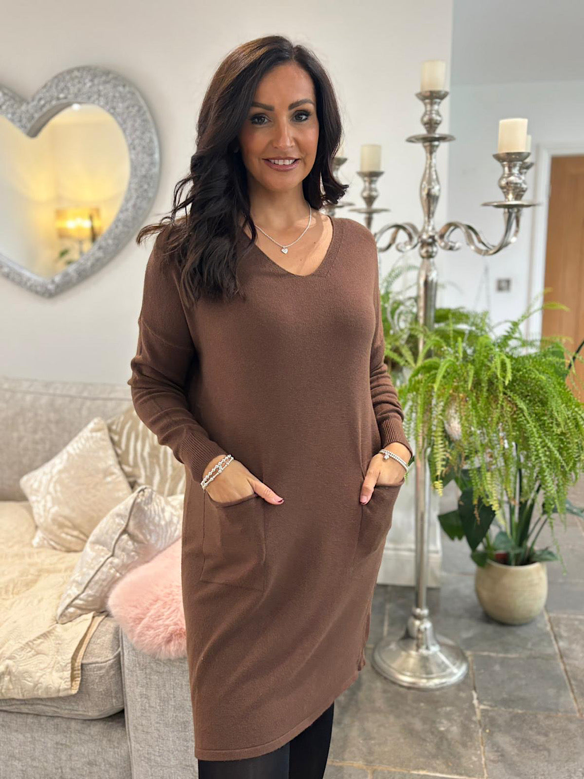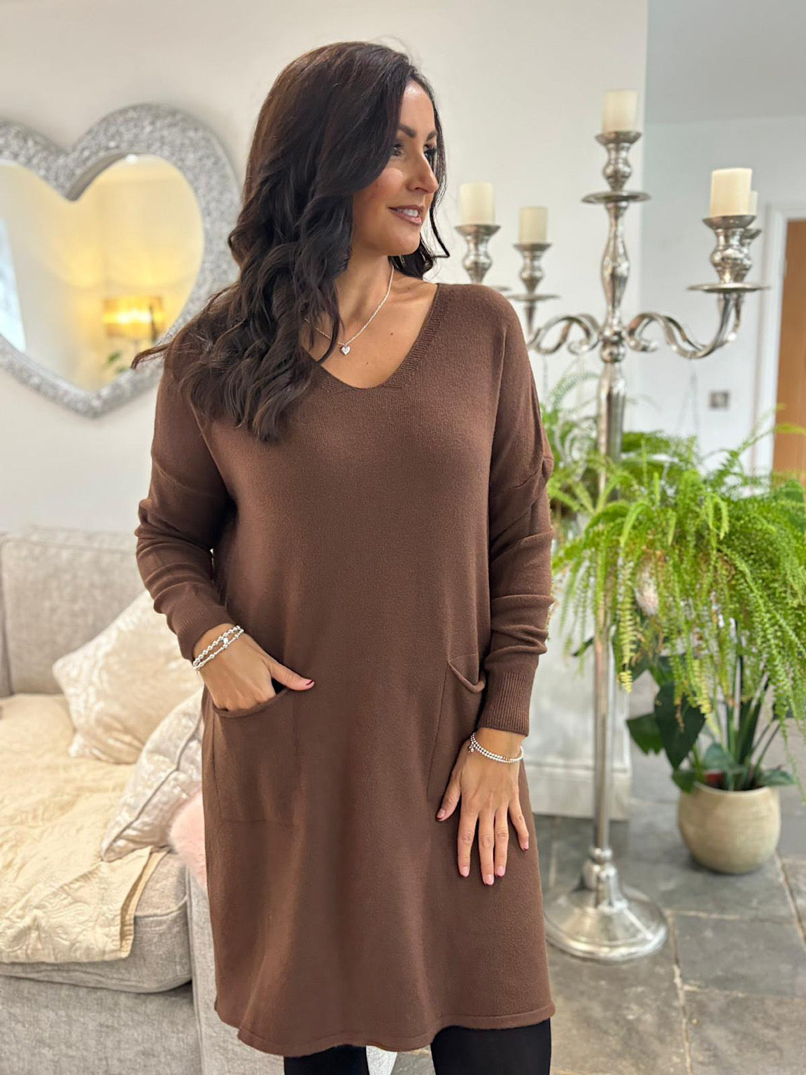 Chocolate Soft Knit Pocket Jumper Dress Fern