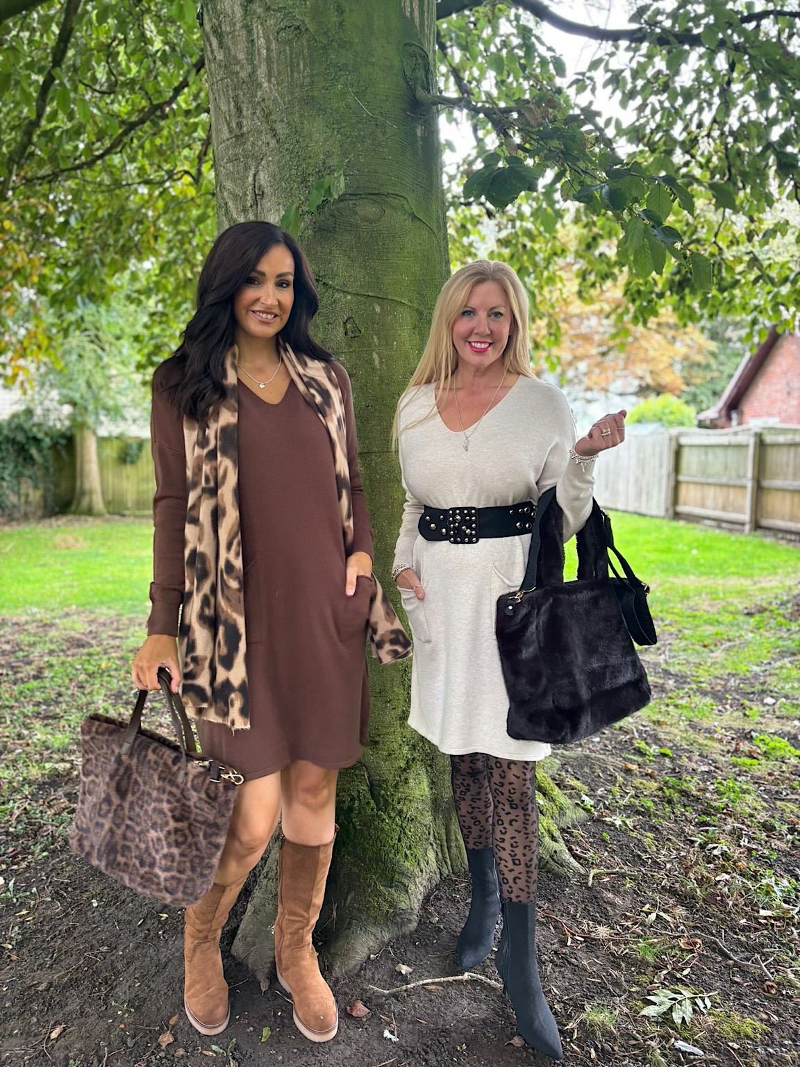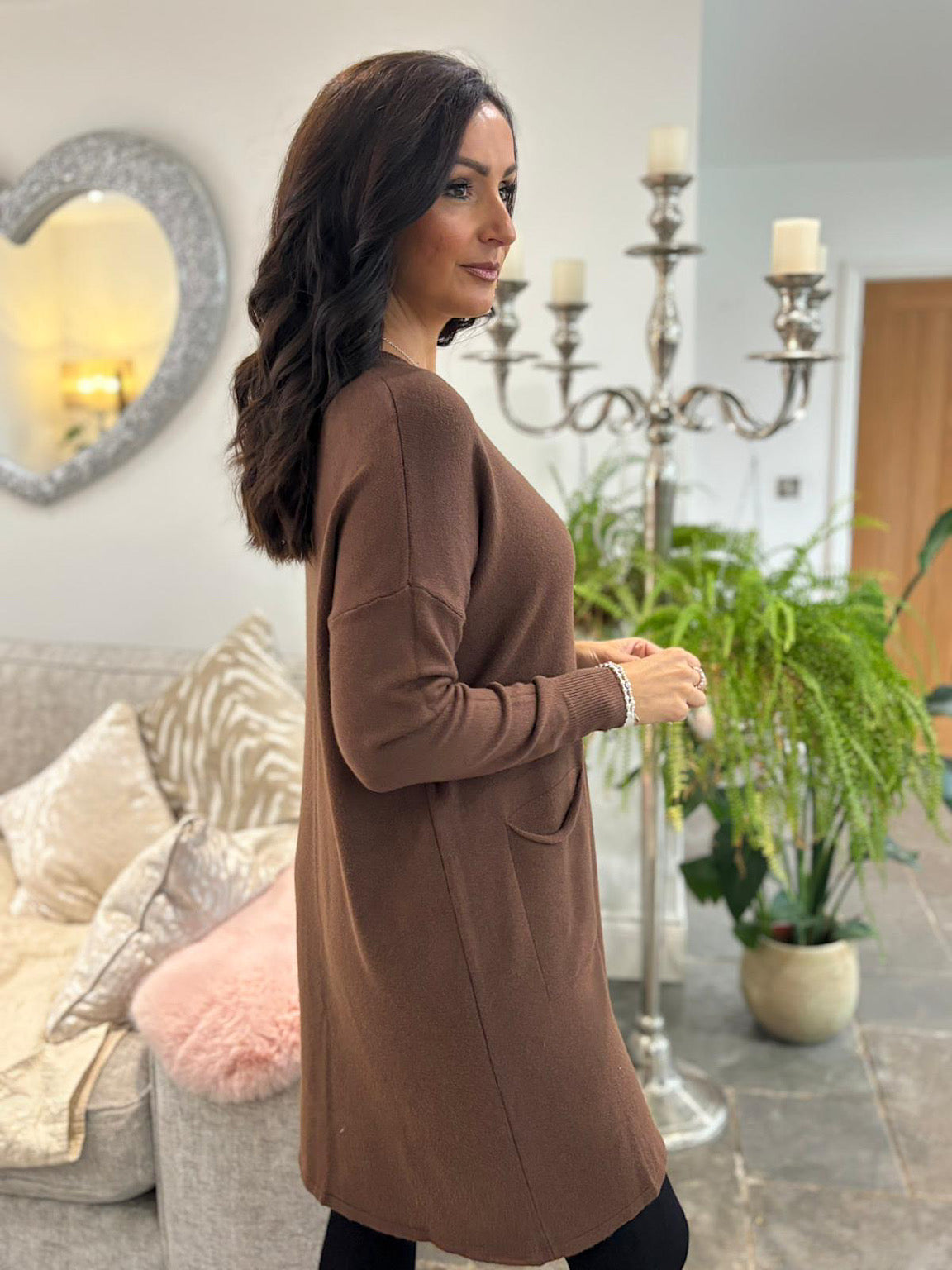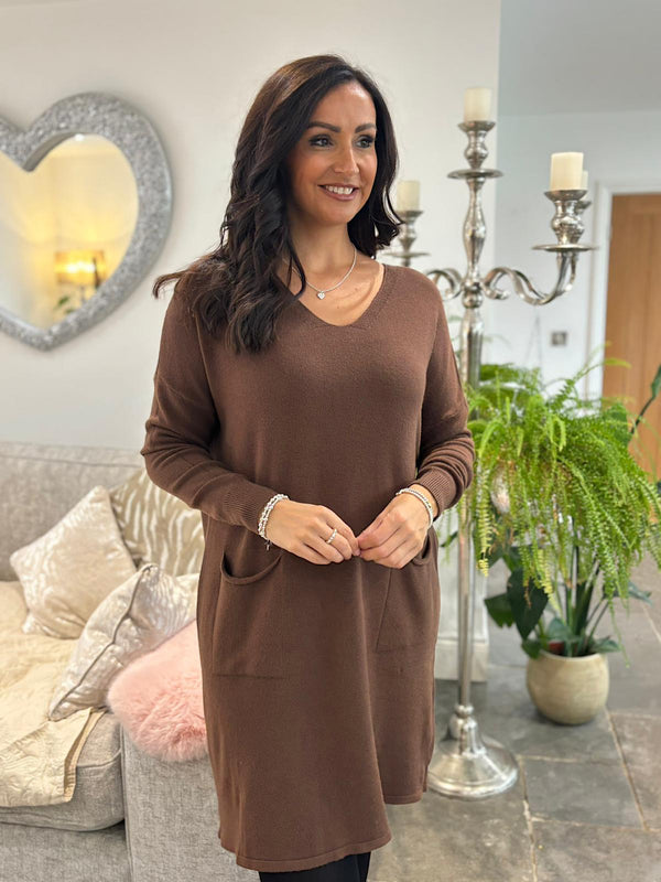 Chocolate Soft Knit Pocket Jumper Dress Fern