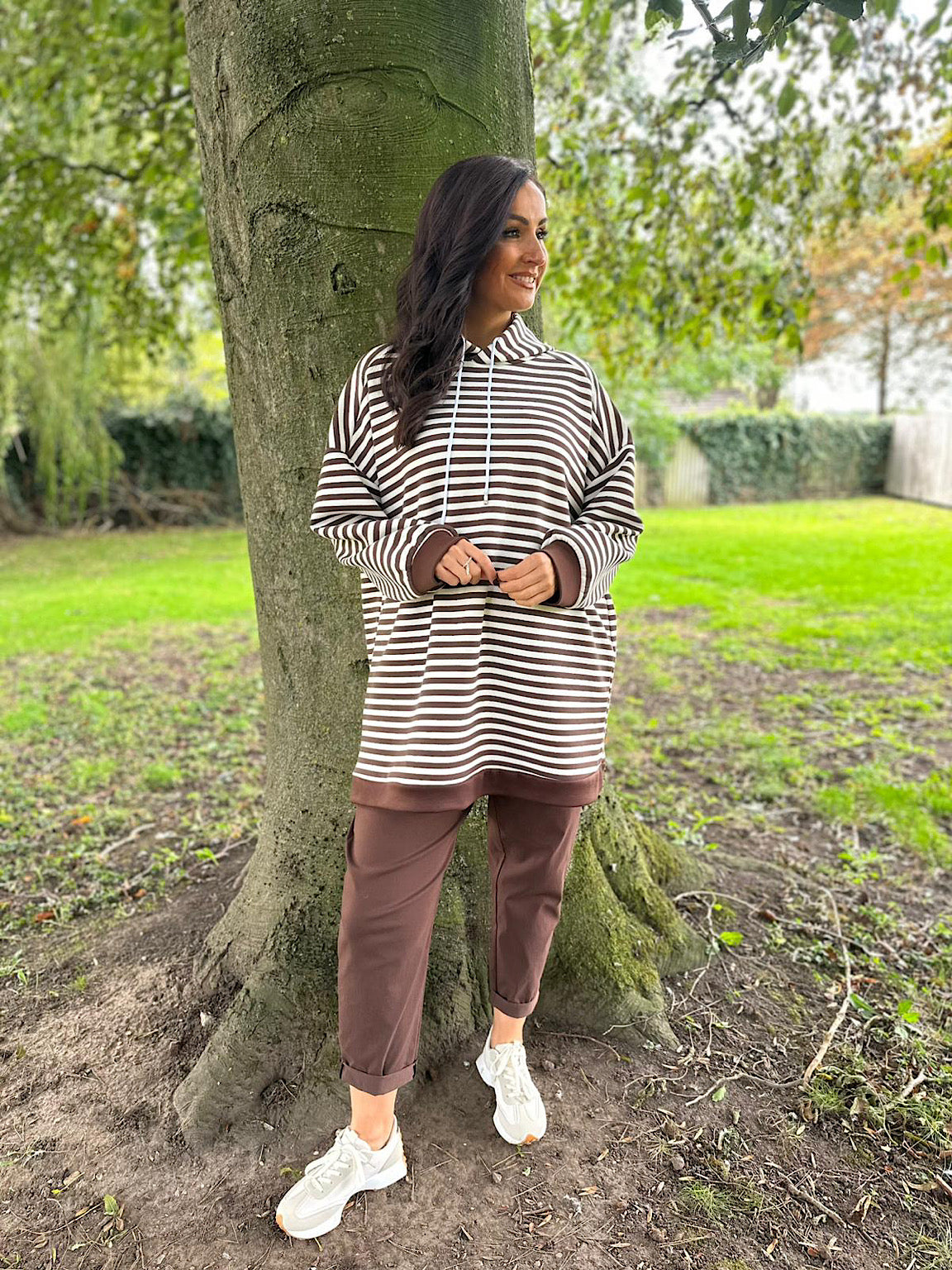 The Striped Hoodie Eleanor offers a sophisticated take on casual wear with its relaxed fit and classic stripe design. Crafted from high-quality fabric, it ensures lasting comfort and durability. Featuring a drawstring hood, this hoodie blends timeless style with practical functionality, making it an effortless addition to your refined wardrobe.