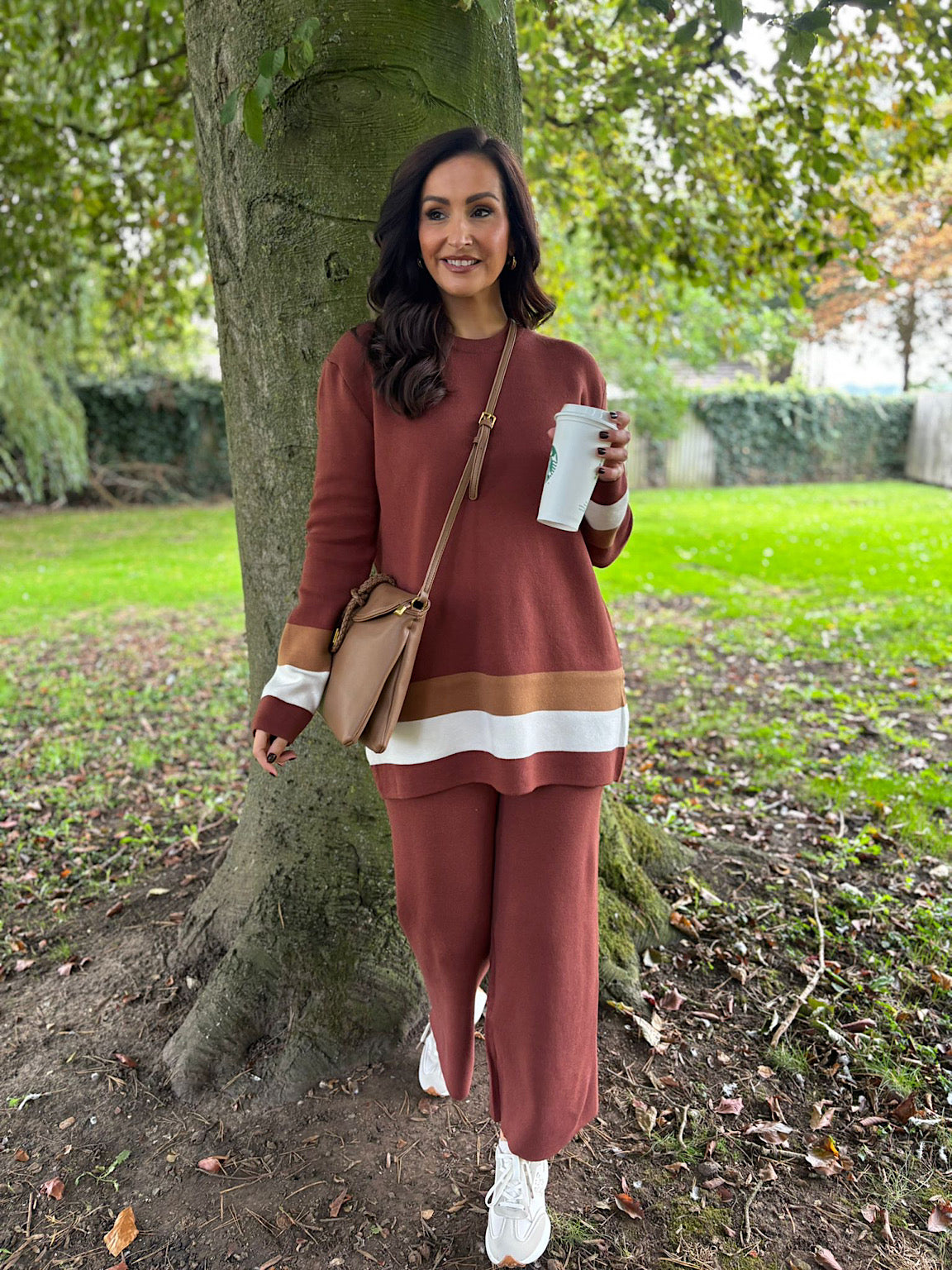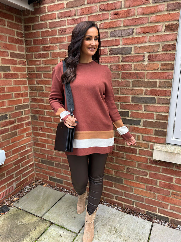 Chocolate Striped Trim Knit Ophelia