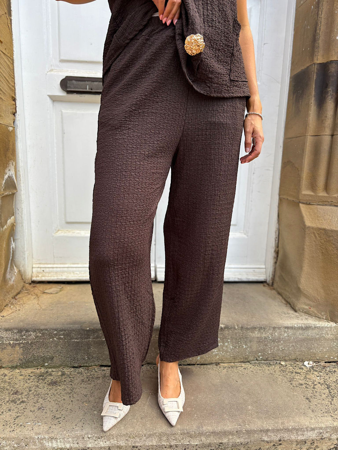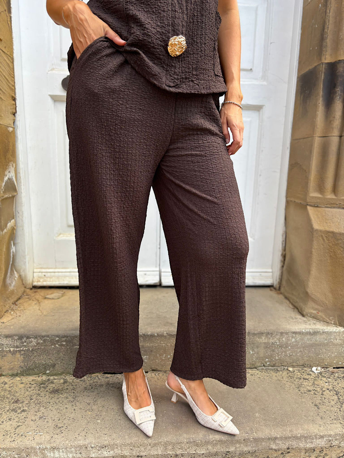 Chocolate Textured Corrina Trousers
