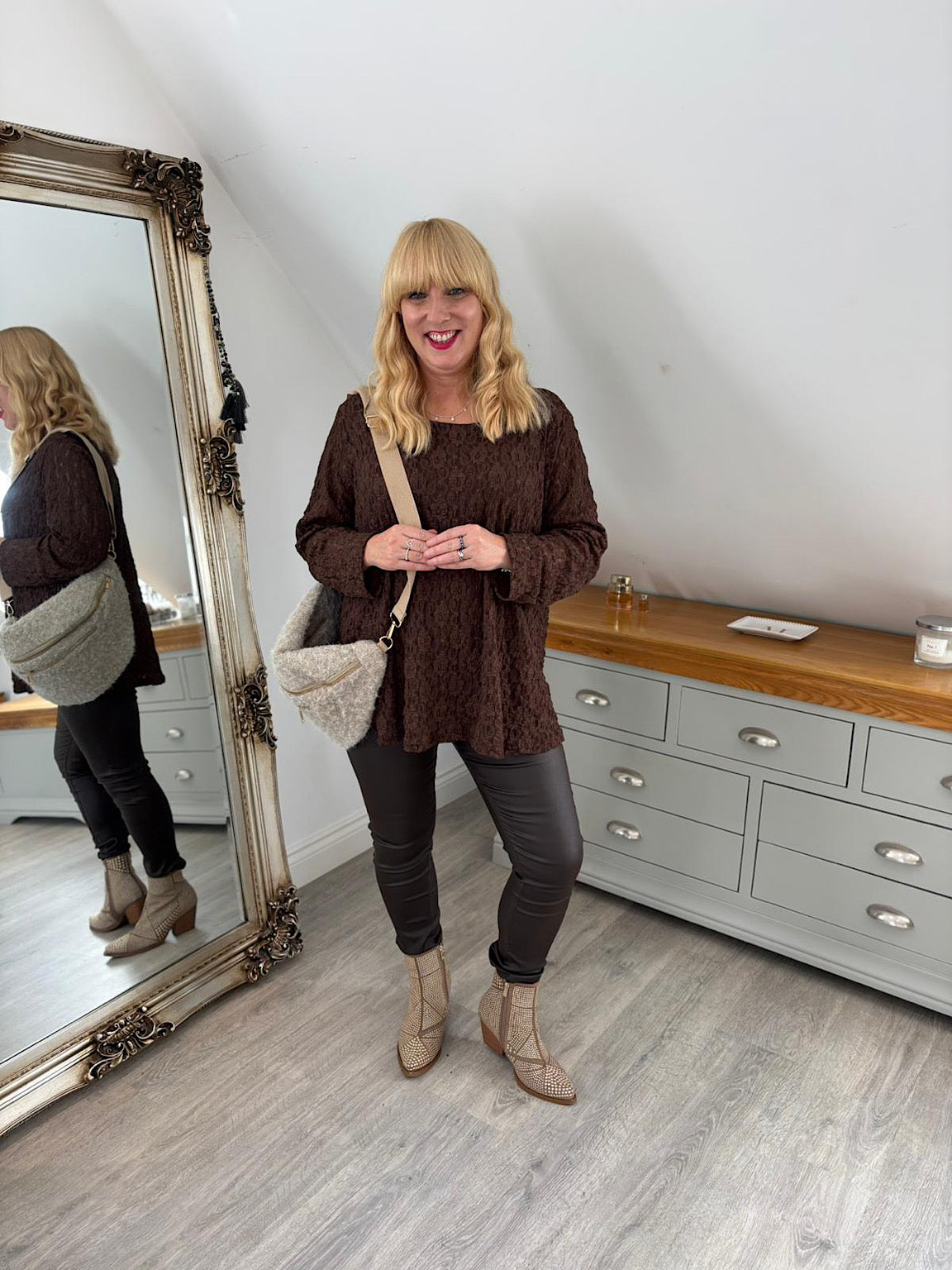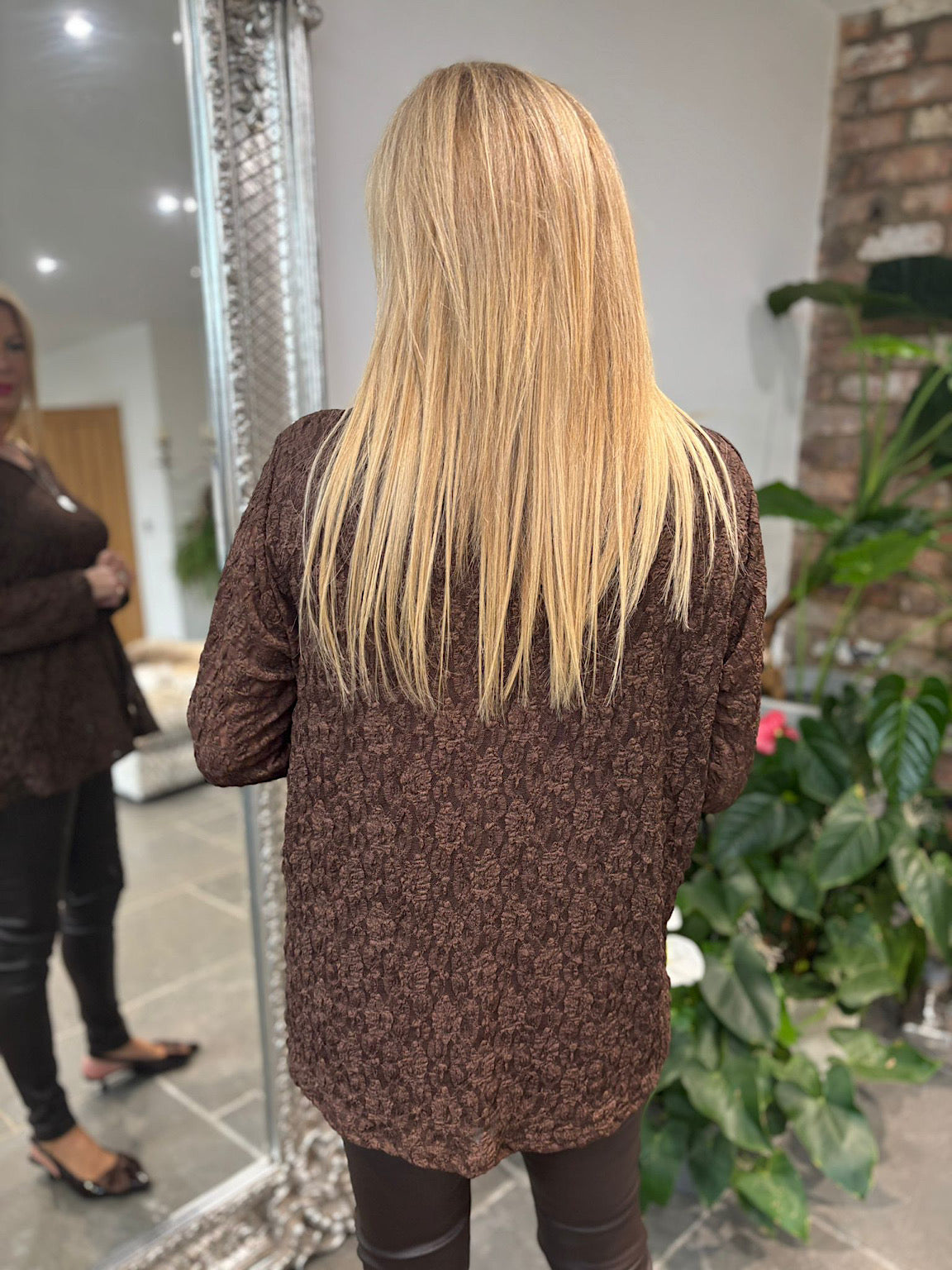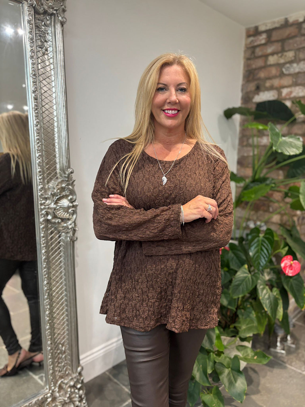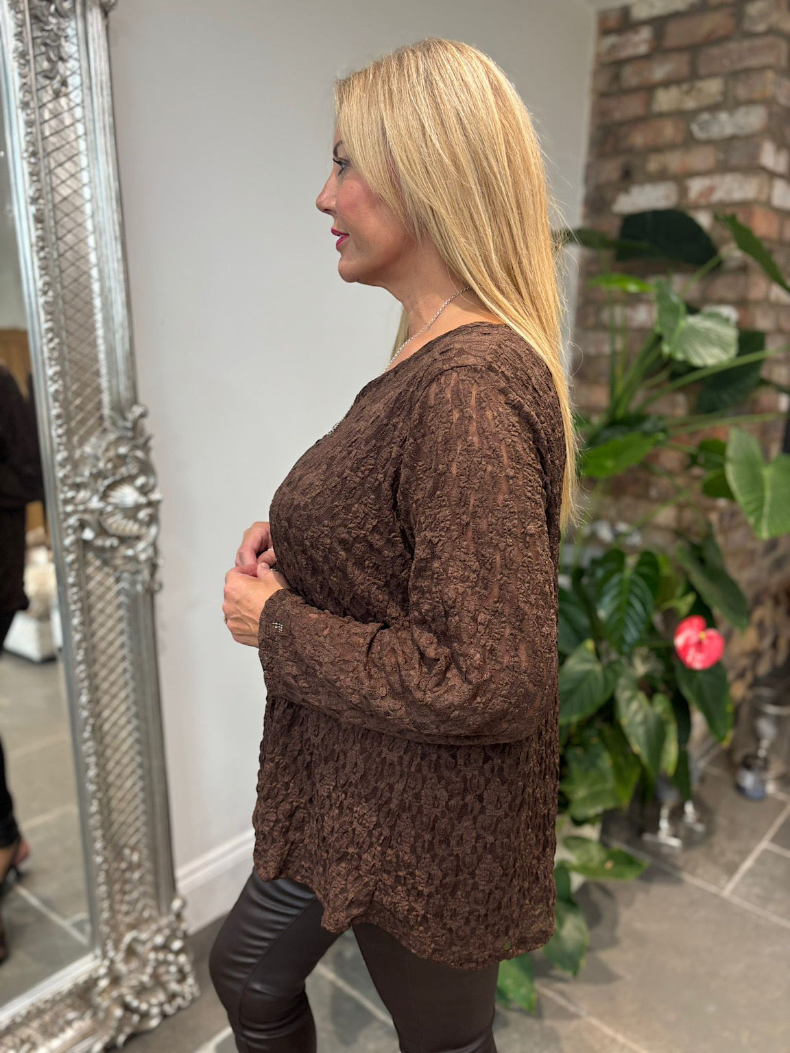 Chocolate Textured Mesh Top Nadia