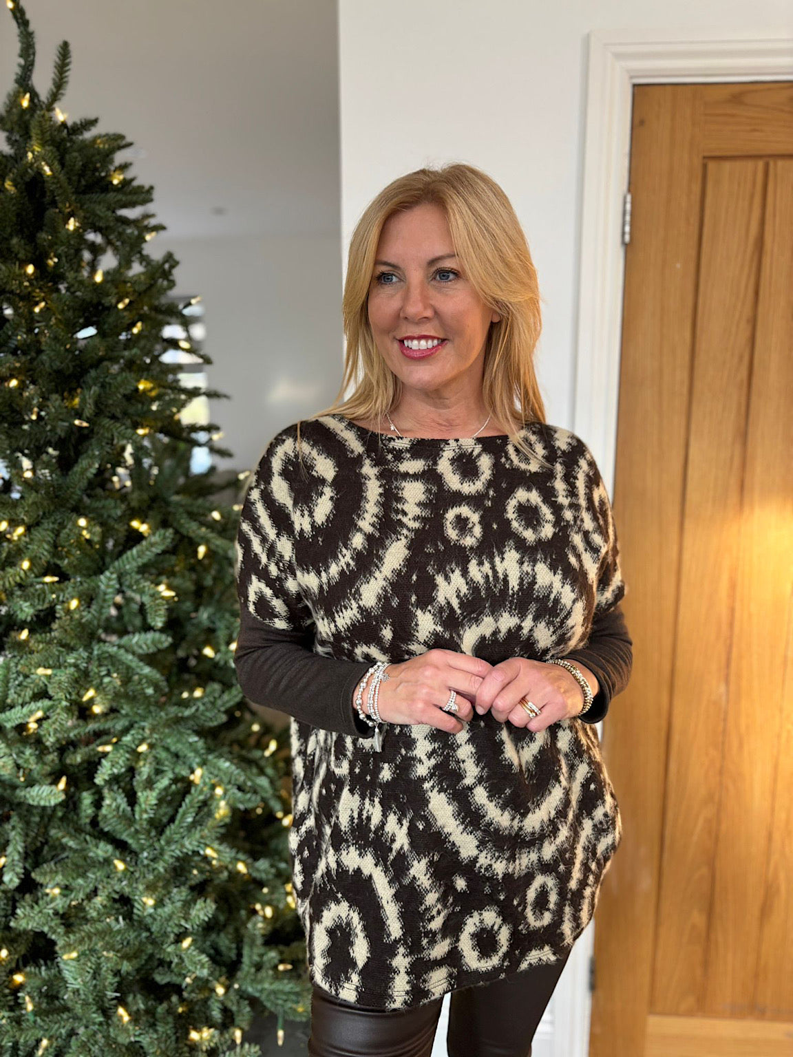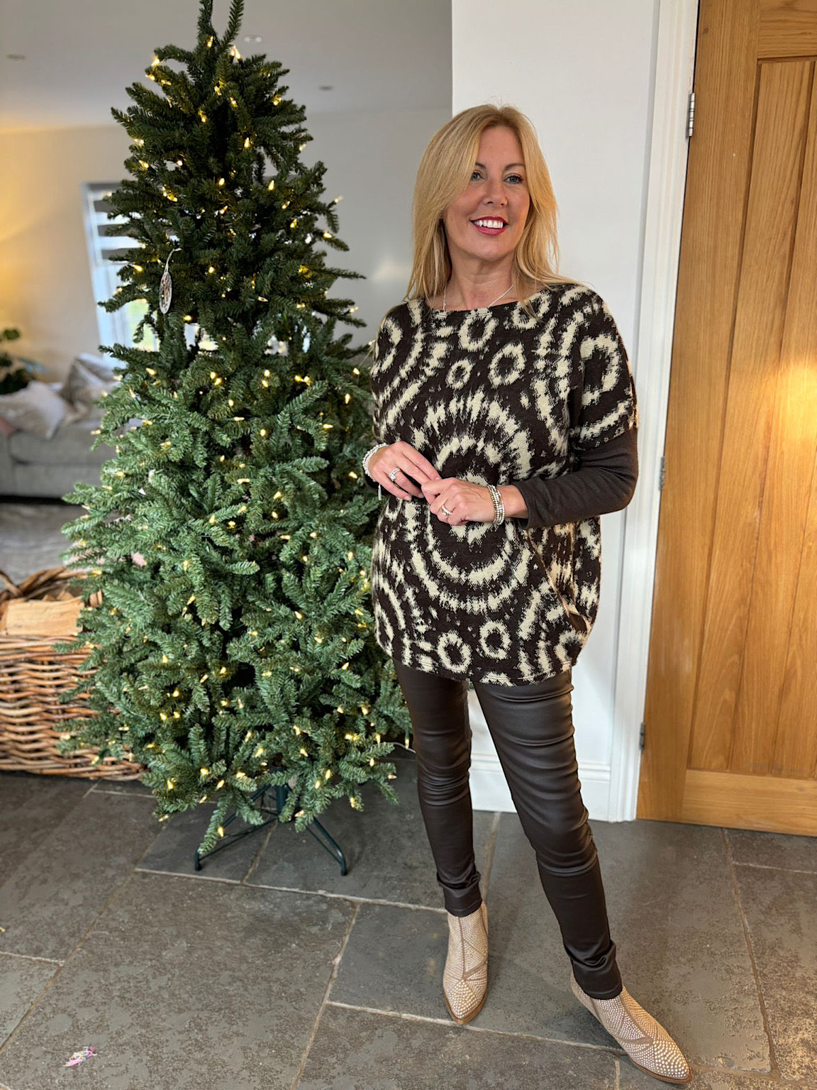 Embrace effortless style with this charming knit featuring a striking tie dye pattern that adds personality to your wardrobe. The soft, comfortable fabric feels wonderful against your skin, while the plain sleeves keep the design beautifully balanced. Perfect for layering or wearing solo, this versatile piece transitions seamlessly from casual days to relaxed evenings. A timeless addition that celebrates individuality through colour and texture.
