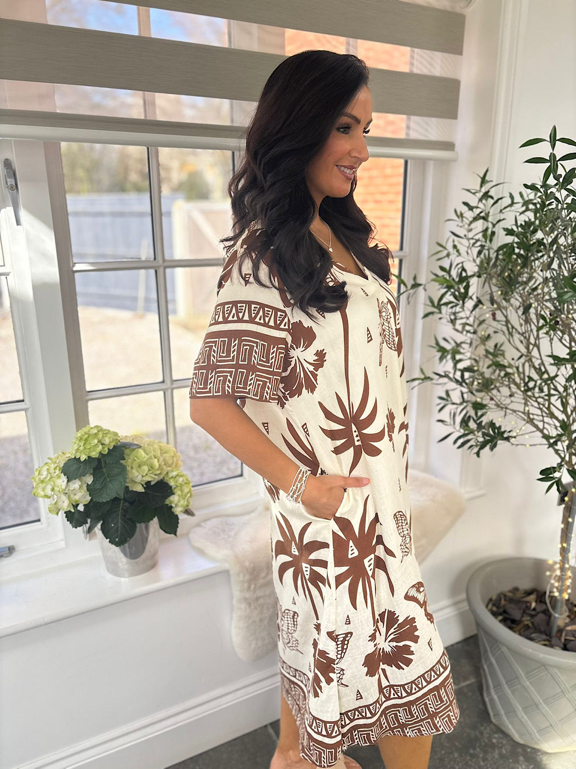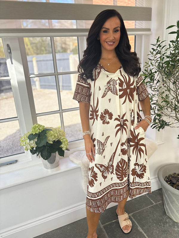 The Tropical Butterfly Dress Jodie combines effortless style with practical comfort. This lightweight piece features a slip-on design that requires no fussing, making it perfect for warm days and easy dressing. Functional pockets add everyday practicality, whilst the gorgeous tropical butterfly pattern brings a vibrant, eye-catching finish. Relaxed and flattering, it's a versatile wardrobe essential that works from casual outings to leisurely afternoons.