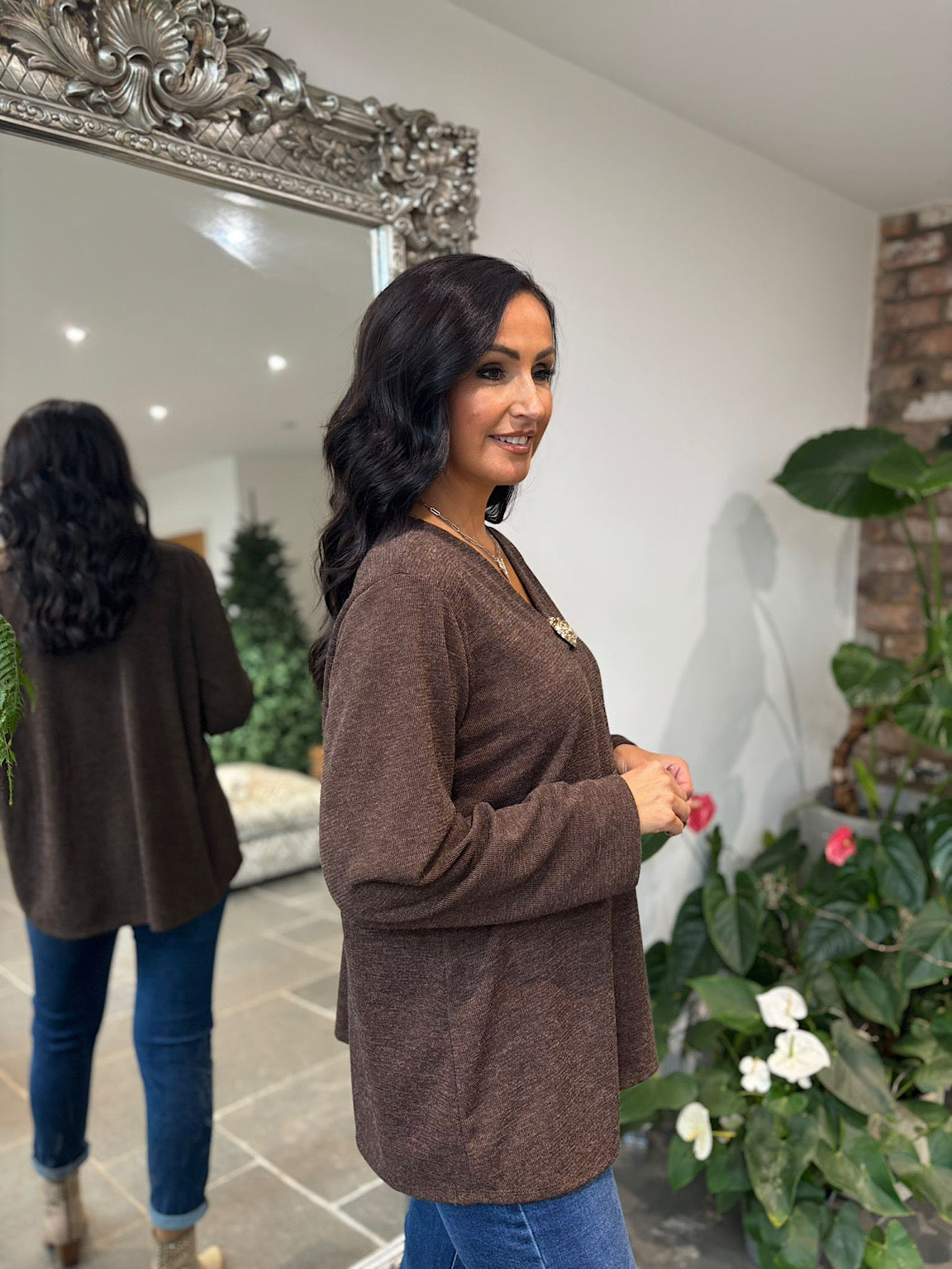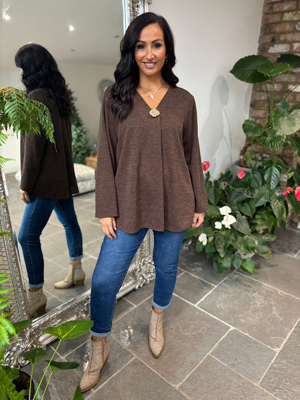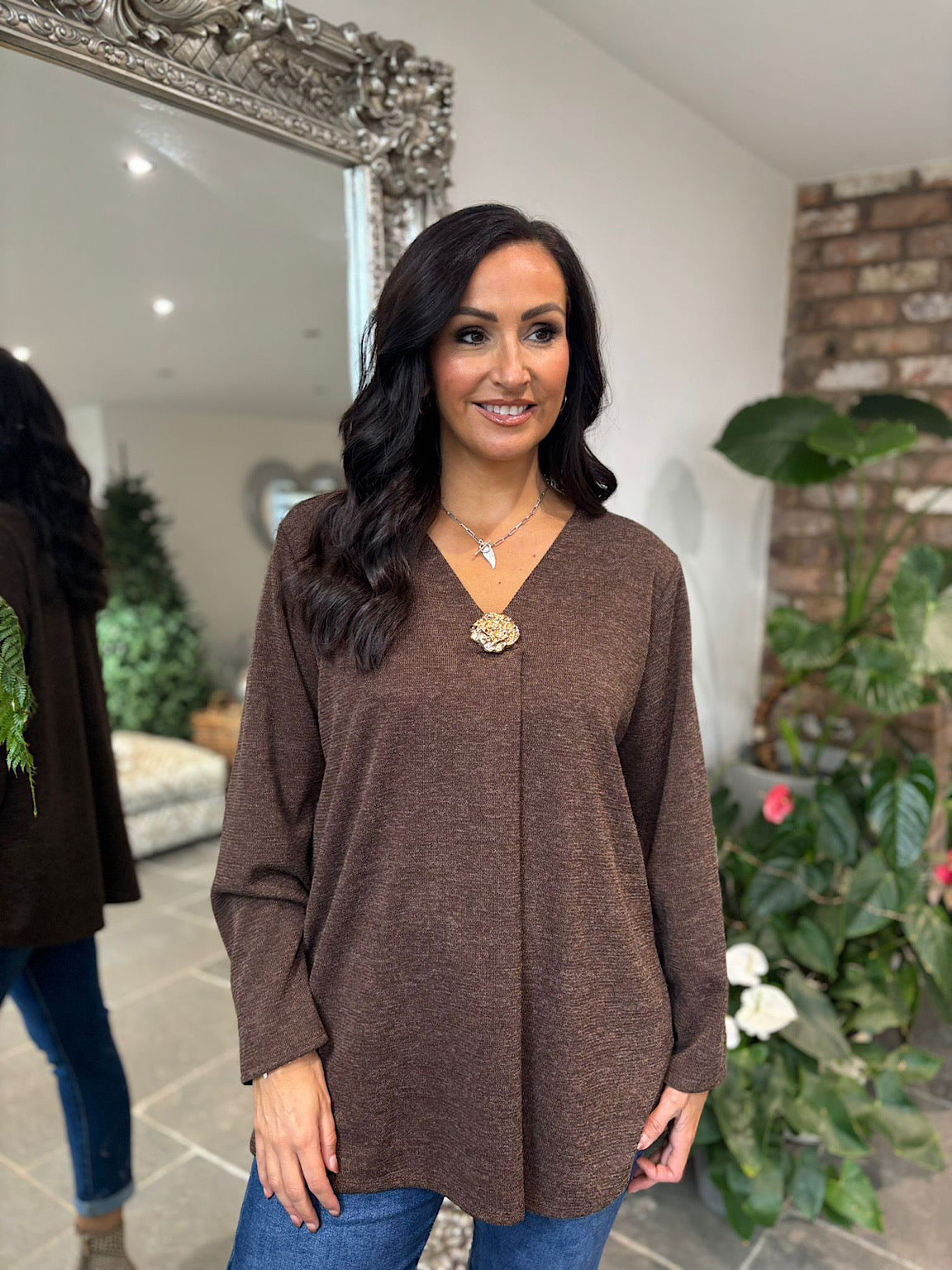 Elevate your everyday wardrobe with this versatile V-neck top crafted from soft, comfortable fabric that feels wonderful against your skin. The standout detachable brooch detail adds a touch of sophistication, allowing you to personalise your look for any occasion. Wear it classic and understated, or dress it up with the brooch for instant elegance. Perfect for layering or wearing solo, this Harper top is a wardrobe essential that adapts to your style.