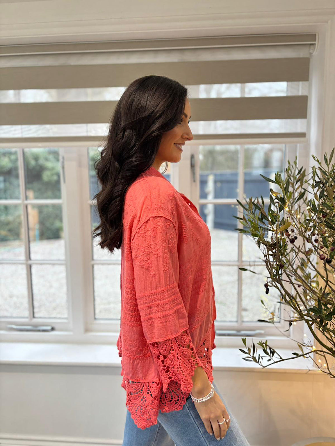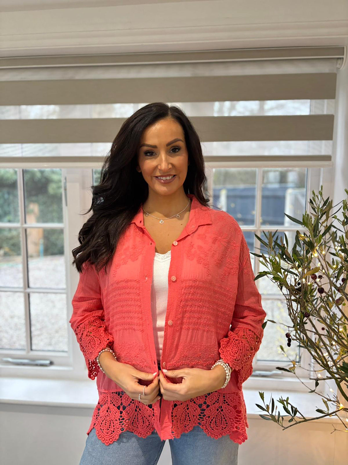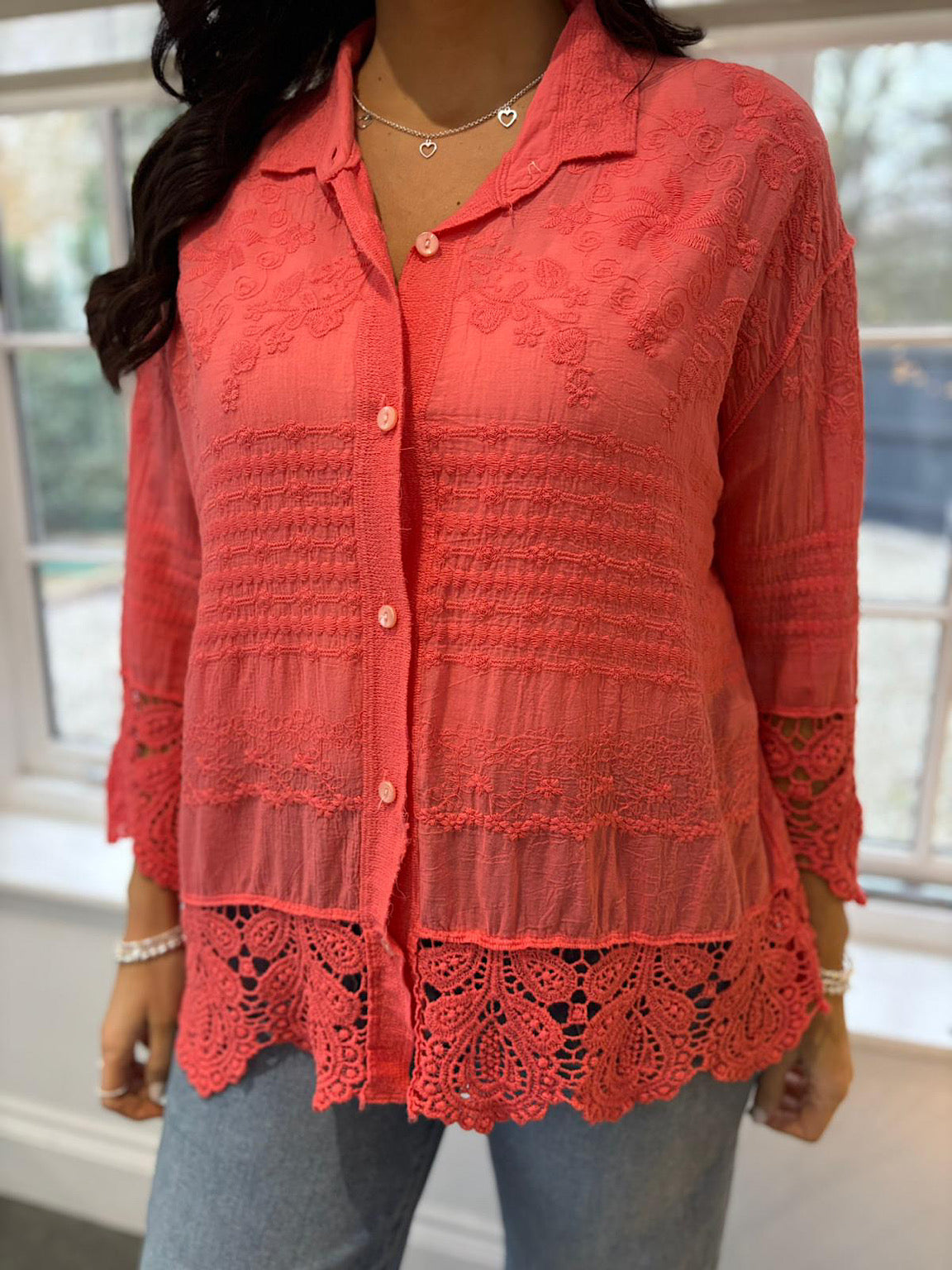 Coral Crochet Detail Shirt Jacket Jenny