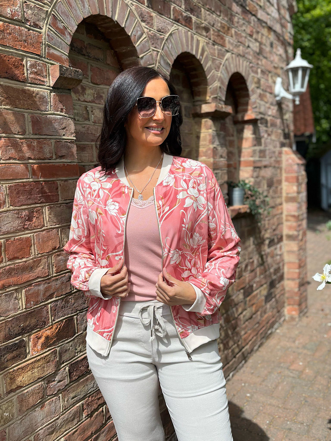 The Coral Floral Swirl Bomber Jacket is the perfect addition to your spring wardrobe. Made with lightweight material, it provides a comfortable and practical layer for those transitional days. The jacket features a convenient zip fastening and a stylish floral design that will elevate any outfit. Stay fashion-forward and functional with this must-have piece.