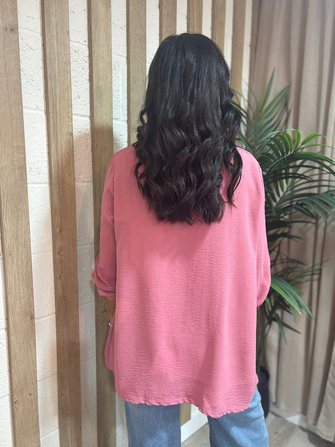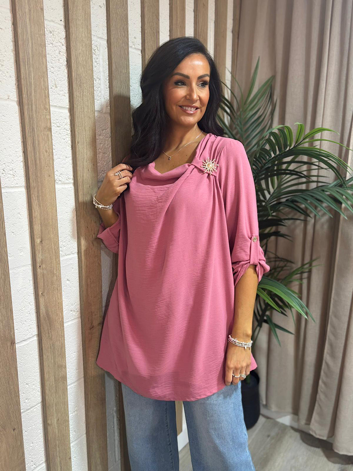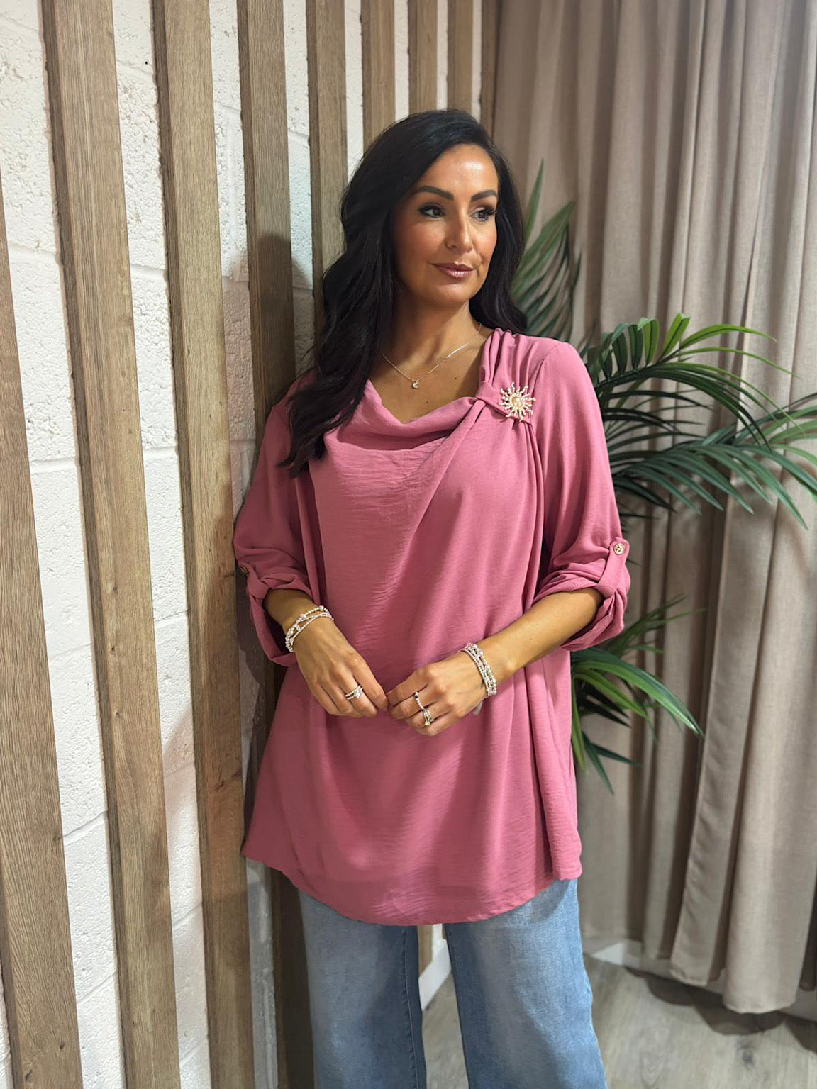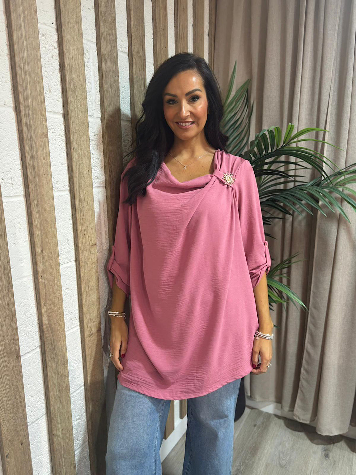 Deep Rose Gathered Cowl Neck Top Harper