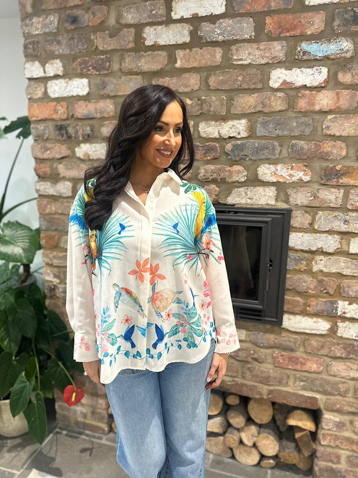 Elevate your wardrobe with the Aubree tropical print shirt, crafted from premium quality material that feels soft against the skin. This vibrant piece features a stunning tropical design in rich, eye-catching colours that brings warmth and personality to any outfit. Perfect for casual wear or layering, the Aubree combines comfort with contemporary style. Whether you're heading to the beach or dressing up a simple look, this versatile shirt delivers both quality and visual impact.