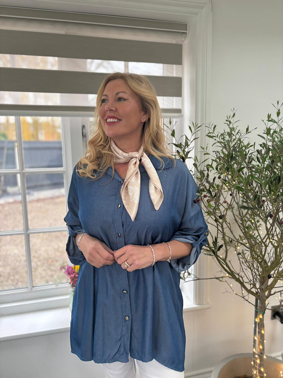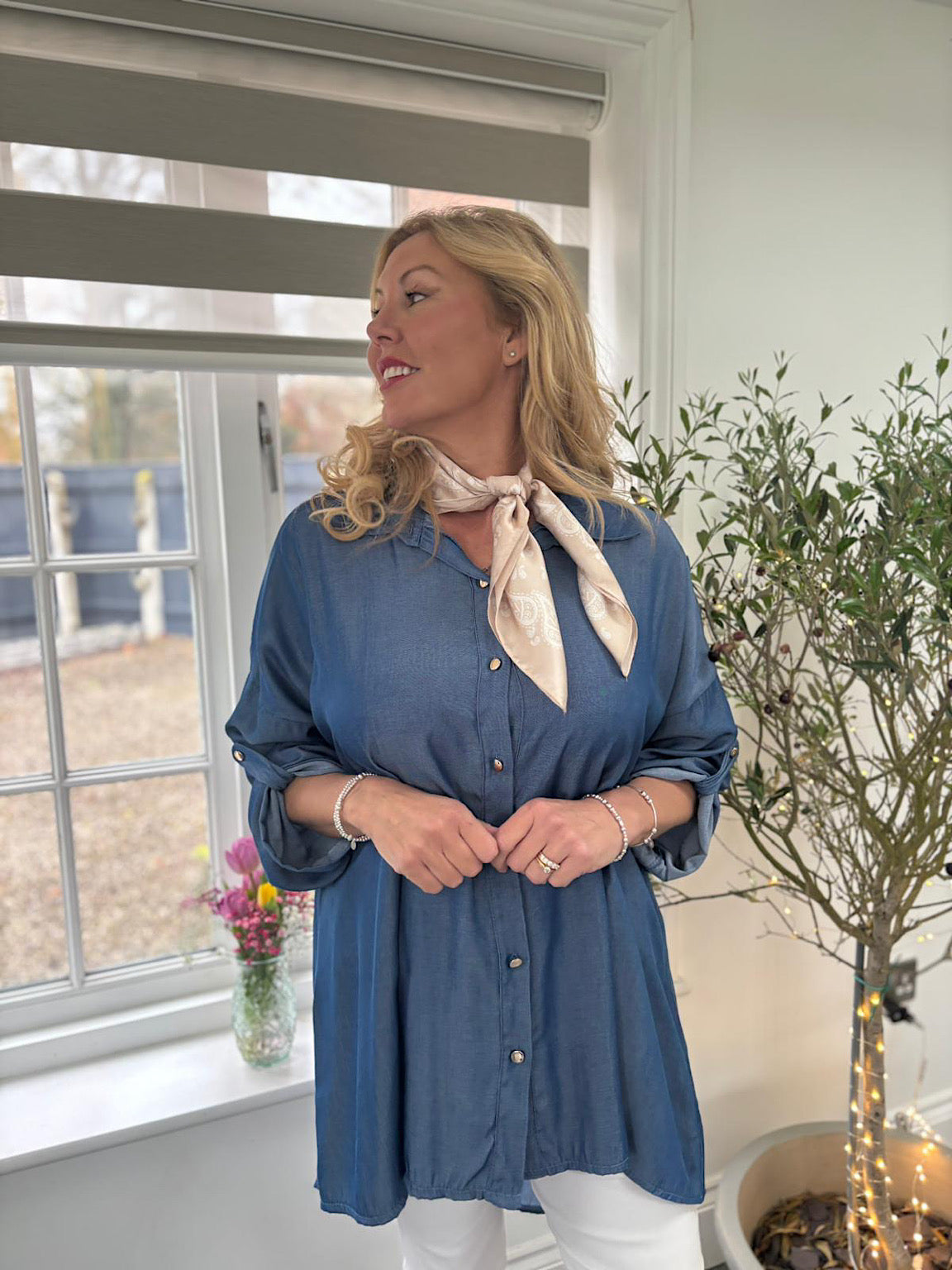 Introducing the Dark Denim Longline Shirt Skylar – a versatile piece designed to elevate your everyday wardrobe. This shirt features a subtle shimmer that catches the light beautifully, adding dimension to classic dark denim colour. The button sleeve detail offers a polished touch, while the longline silhouette with high-low hem creates a flattering, modern shape that works effortlessly from day to night. Perfect for layering or wearing solo, this shirt supports your style journey with timeless appeal and contemporary flair.