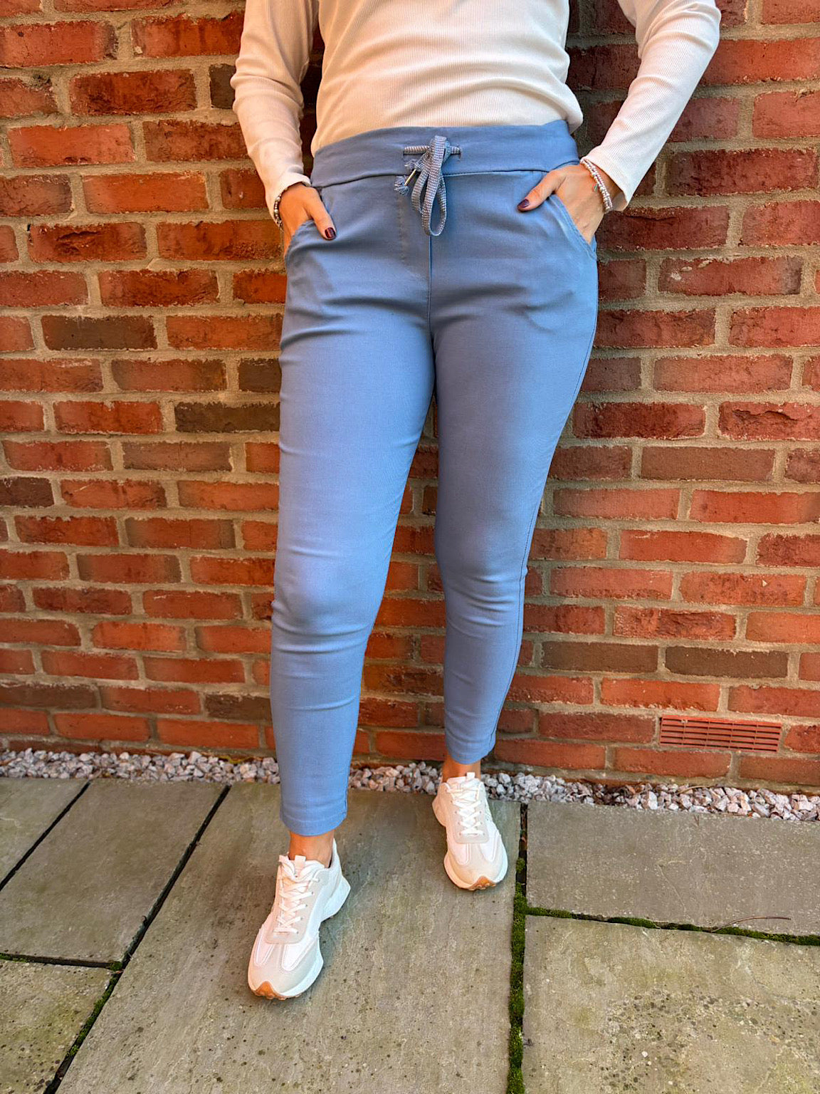 These Magic Trousers are perfect for staycations, holidays or even just going out walking with the dog. Available in a variety of colours, they are super stretchy, comfortable and have a lurex detail drawstring. If you would like a looser boyfriend style fit then we recommend going for the size up.