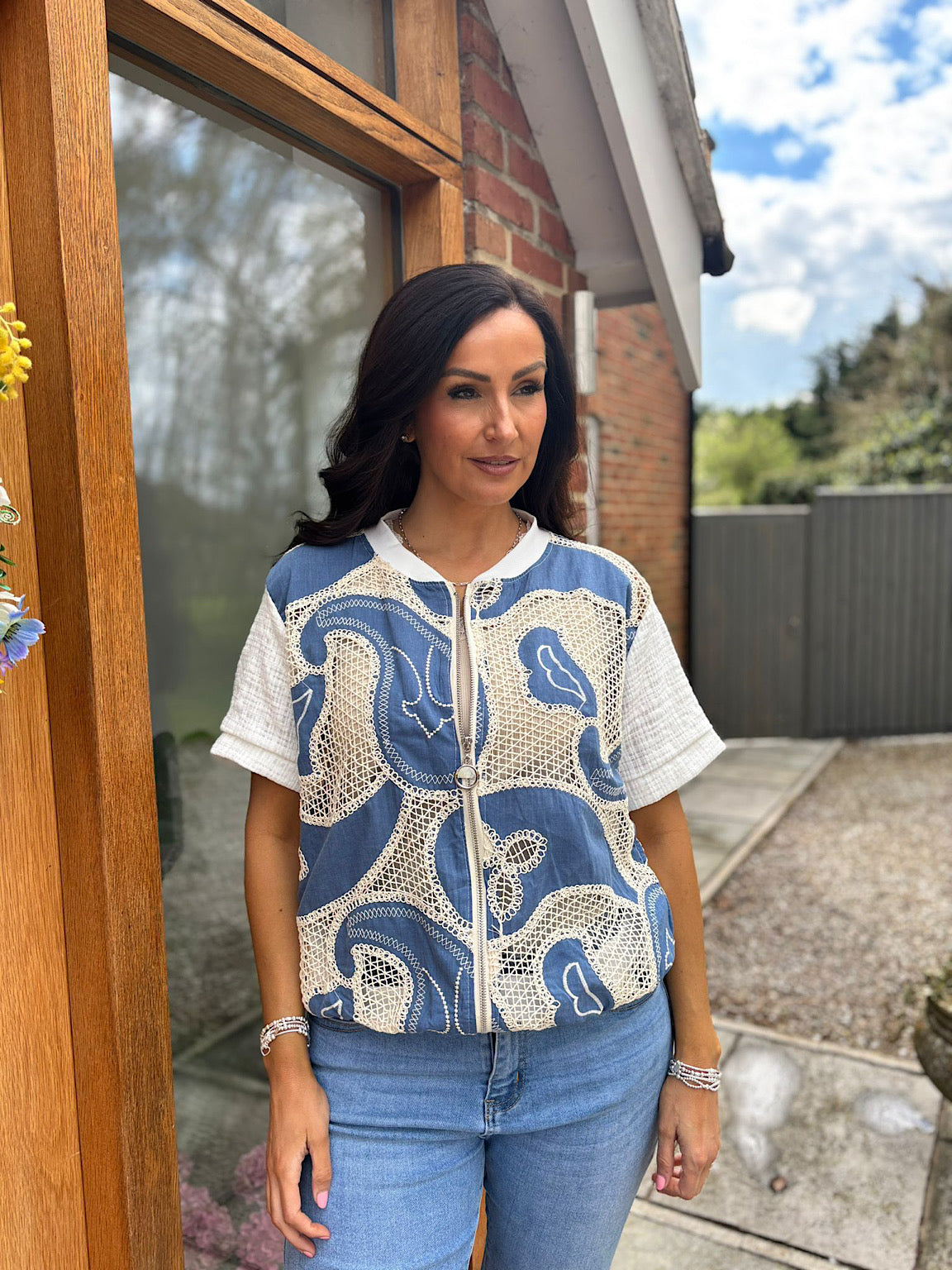 Denim Net Zip Jacket Gina