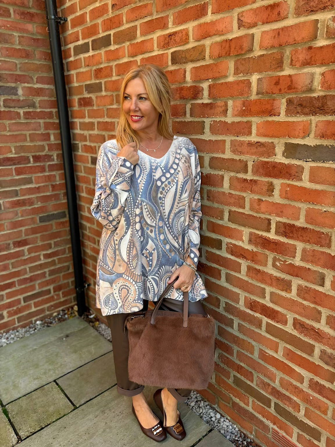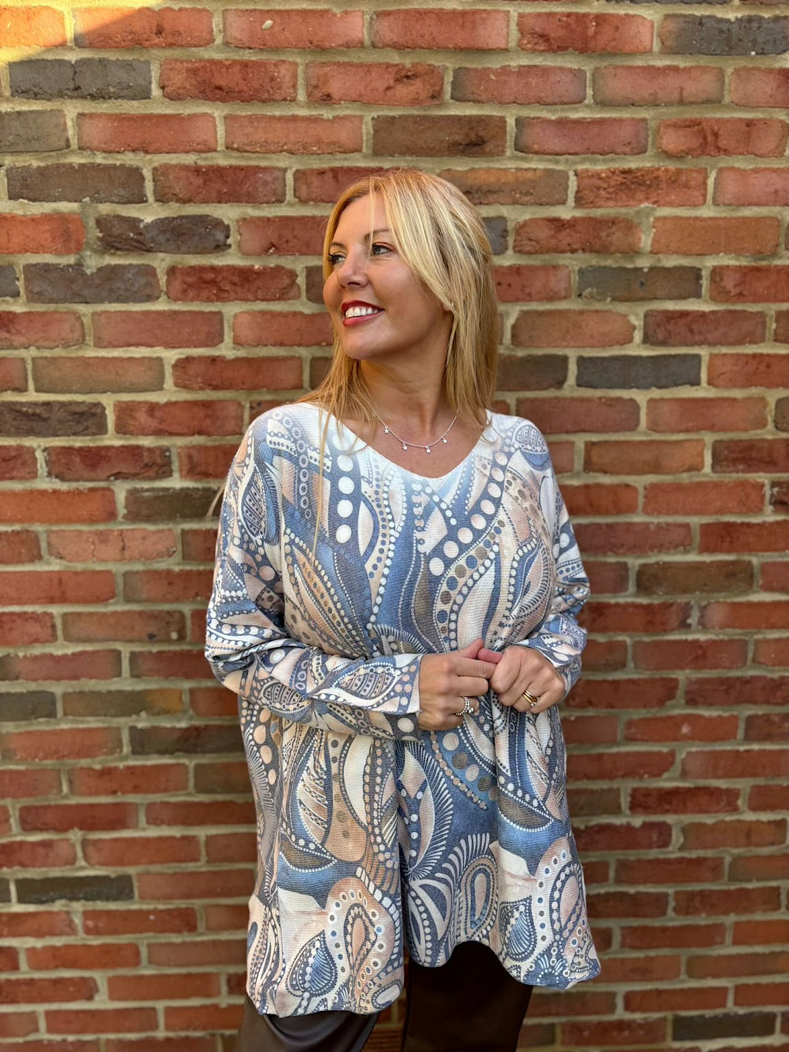 Introducing the Soft Touch Aboriginal Knit Ava—a beautiful addition to our beloved Ava collection. Crafted from luxuriously soft fabric, this knit delivers the comfort you've come to love from this popular style. The striking Aboriginal pattern brings cultural richness and visual interest to your wardrobe, while the gentle touch of the material ensures all-day wearability. Perfect for those who appreciate quality, comfort, and meaningful design.