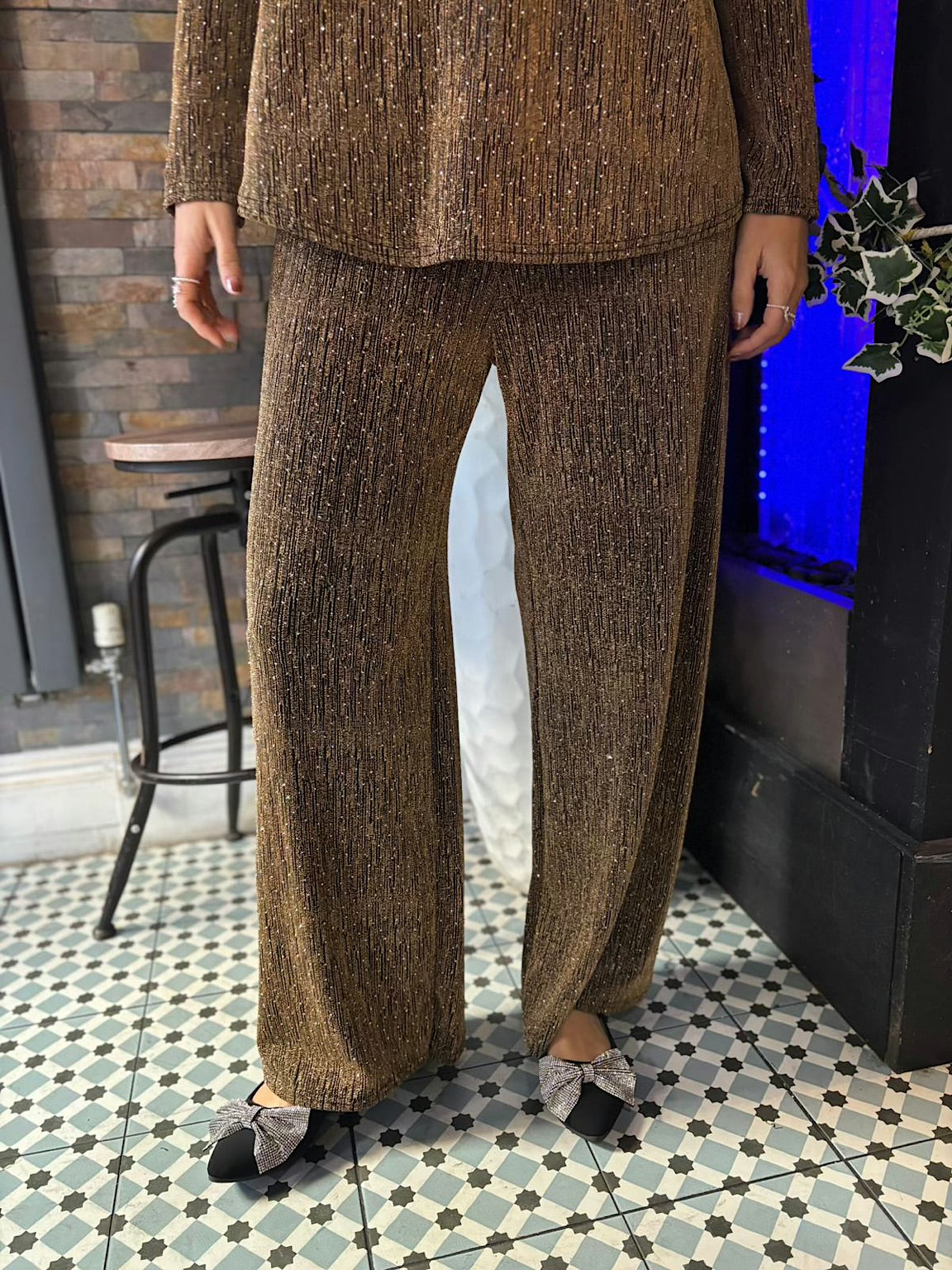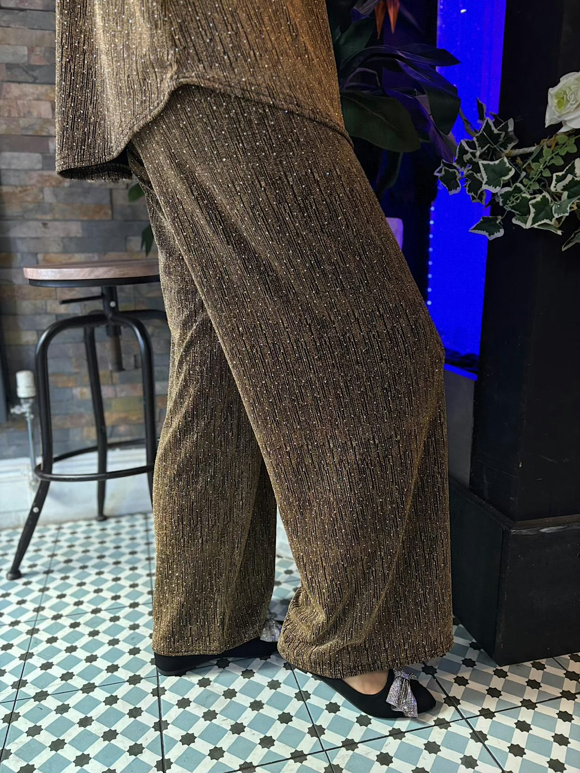 These Diamante Shimmer Trousers by Hazel combine style with comfort, featuring a lightweight fabric that feels easy to wear all day. The elasticated waist ensures a perfect fit and effortless movement, while the subtle diamante shimmer adds a touch of glamour to any outfit. Ideal for both casual and dressy occasions, they offer a flattering look without sacrificing comfort.