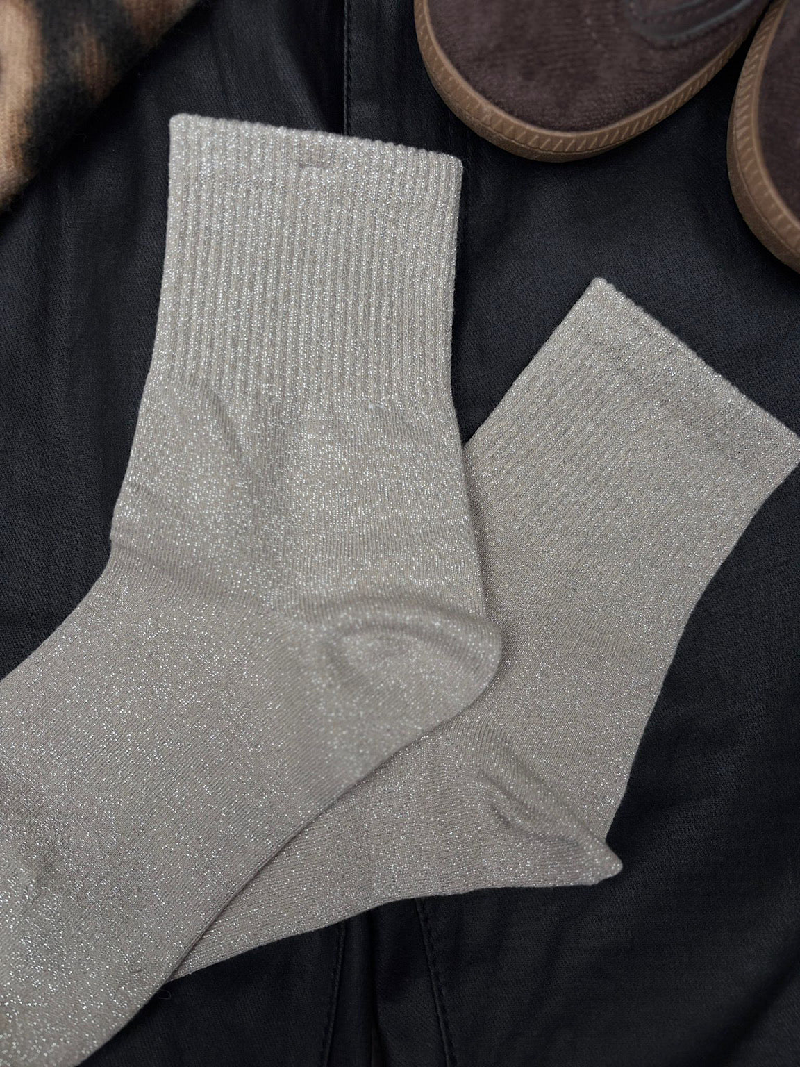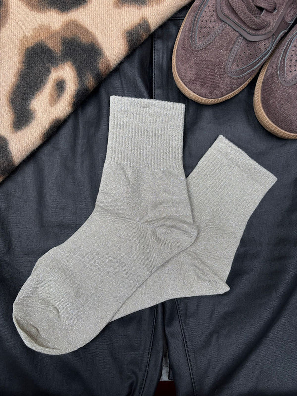 Add a touch of sparkle to your everyday look with these Glitter Ankle Socks. Designed to fit softly around your ankle, they provide comfortable wear without slipping. Perfect for adding subtle shine while keeping your feet cosy throughout the day.
