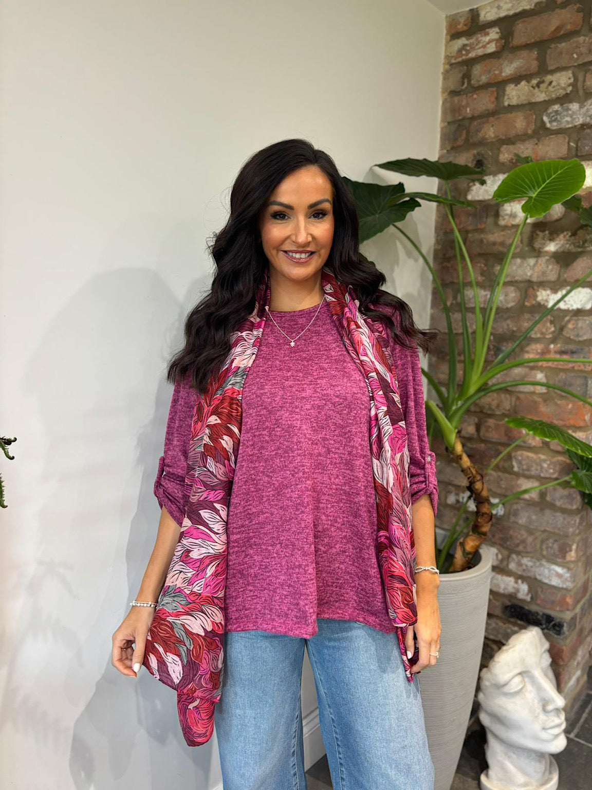 Experience cosy comfort with the Two Piece Scarf Knit Danni. Crafted from a soft knit fabric, this set features a detachable scarf for versatile styling and warmth when you need it. The button detail on the sleeve adds a subtle touch of elegance while allowing easy adjustment for comfort. Perfect for layering, this piece offers both practicality and style to keep you comfortable all day.