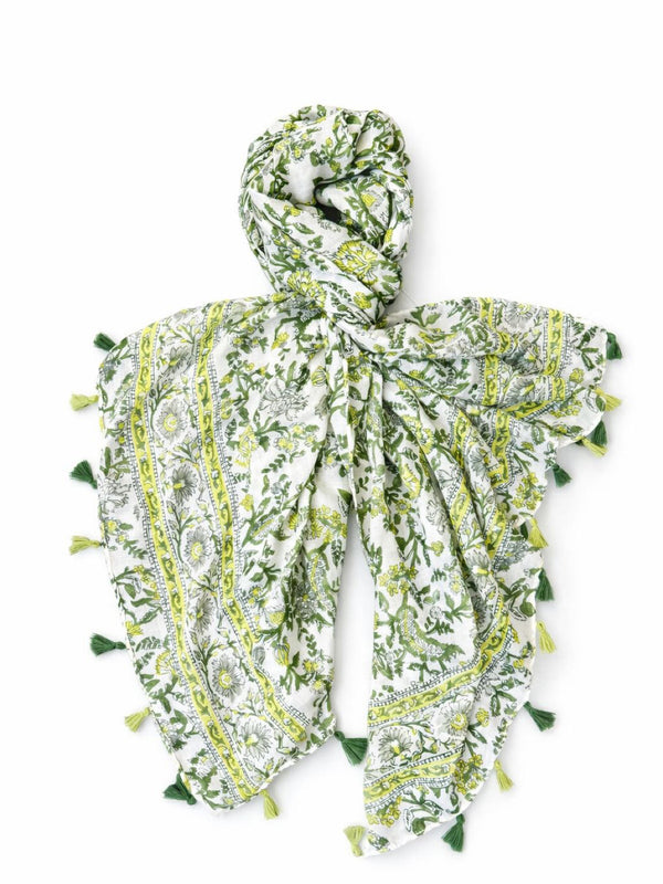 Green Elegant Floral Tassel Scarf