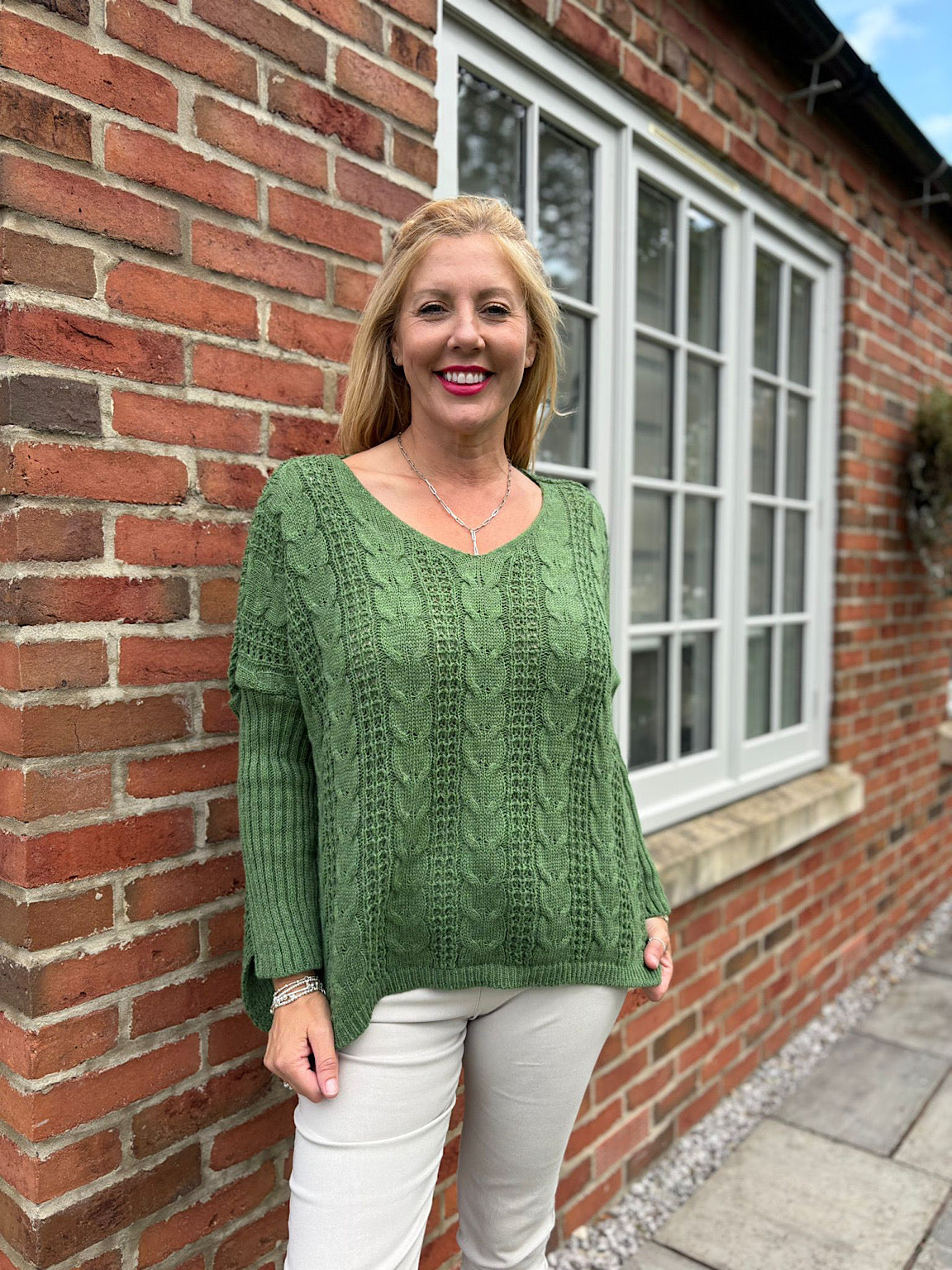 Green Tube Sleeve Knitted Jumper Ellie