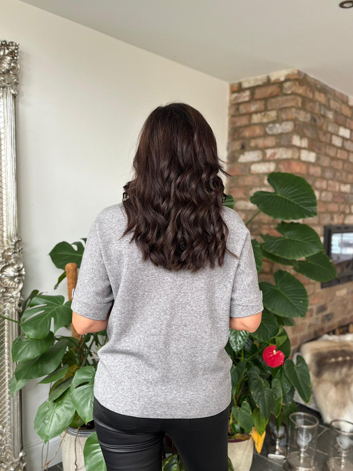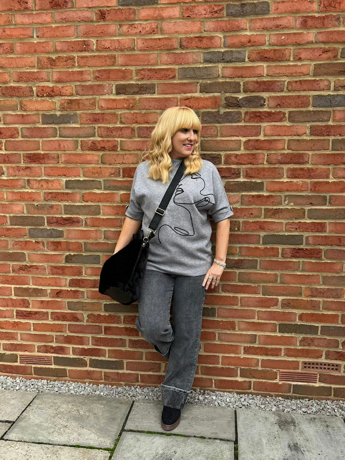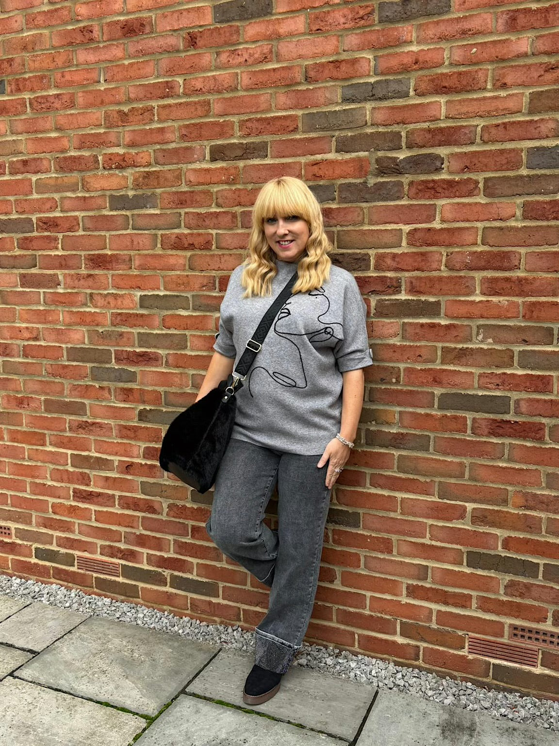 Styled with.....> Black Fluffy Tote Bag / Black Chunky Ruched Boots / Grey Embellished Turn Up Jeans
