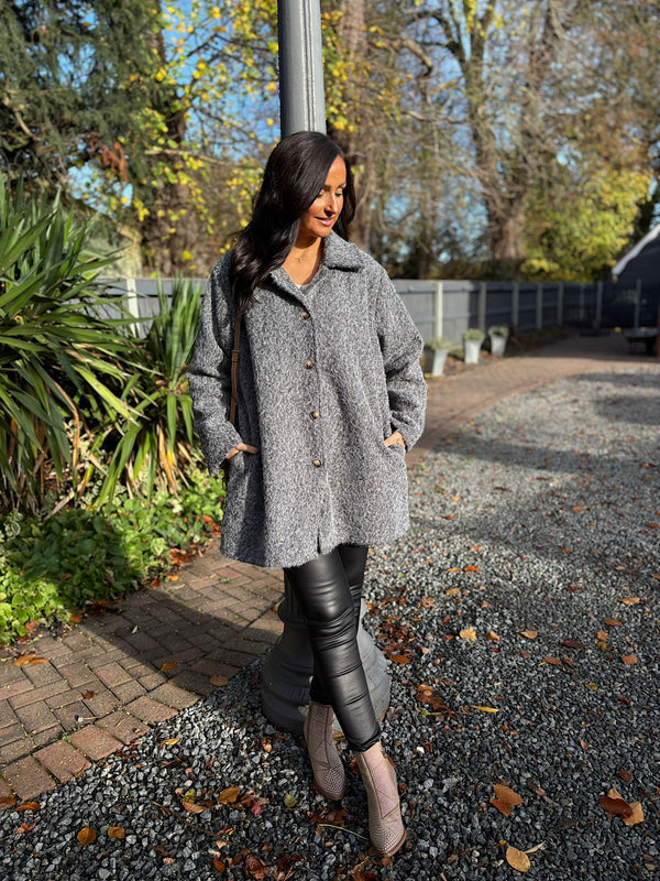 Crafted from sumptuous brushed wool, the Bridget coat delivers timeless elegance with everyday practicality. The classic button fastening ensures a secure, adjustable fit, while functional pockets keep your essentials close at hand. Perfect for layering through transitional seasons, this versatile piece transitions effortlessly from casual outings to more polished occasions. A wardrobe essential that combines comfort with understated sophistication.