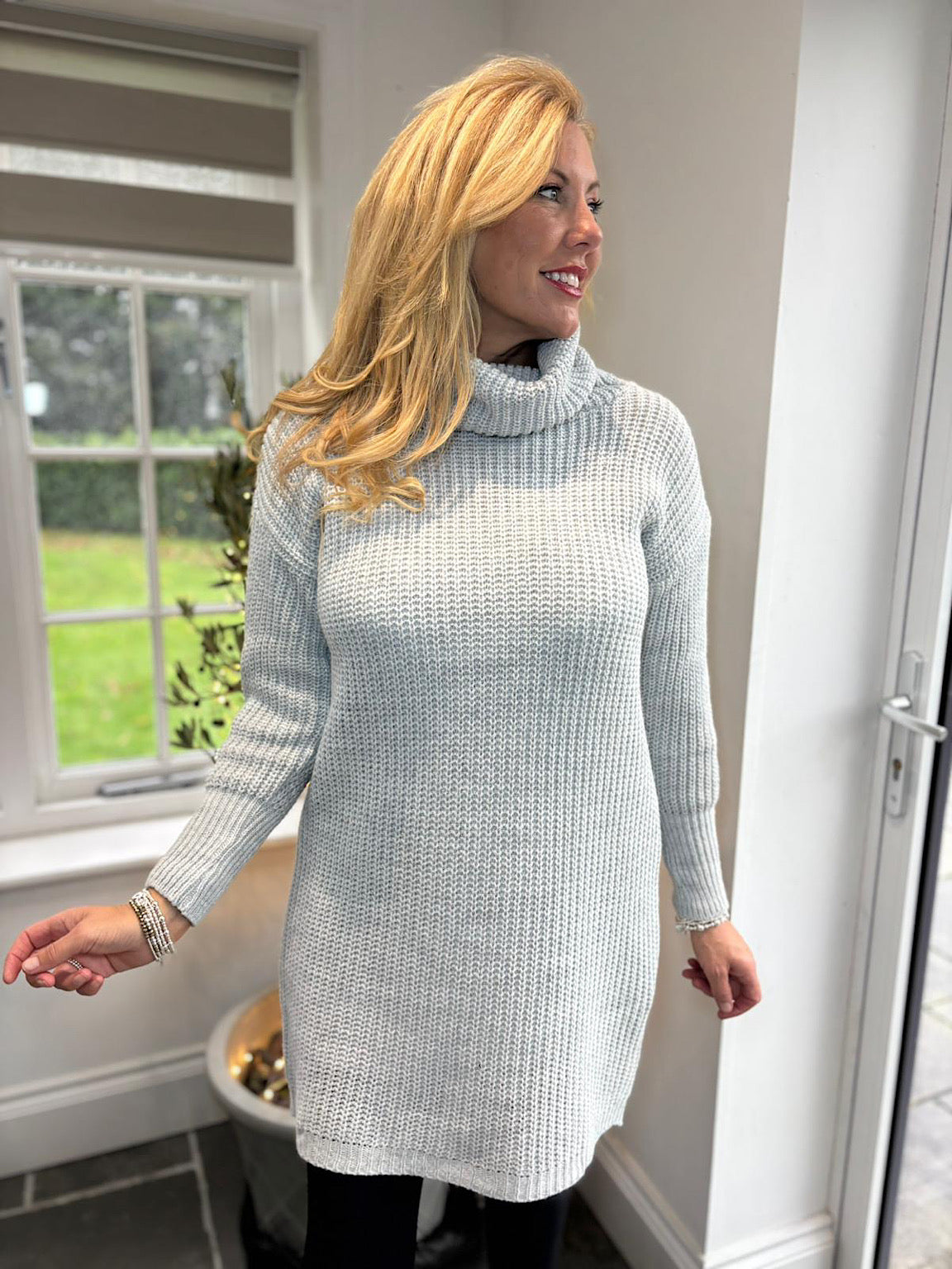 Wrap yourself in warmth and elegance with this cosy knit dress, featuring a classic roll neck and charming gold button detailing on the cuffs. Perfect for layering through the seasons, this versatile piece transitions effortlessly from casual days to evening occasions. The soft knit fabric provides comfort and a flattering fit, while the thoughtful button accents add a touch of sophistication. A timeless wardrobe essential that you'll reach for again and again.