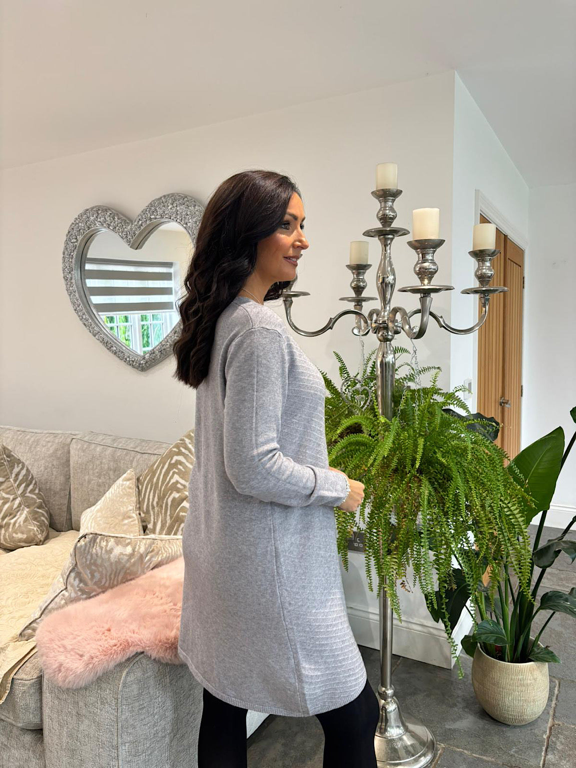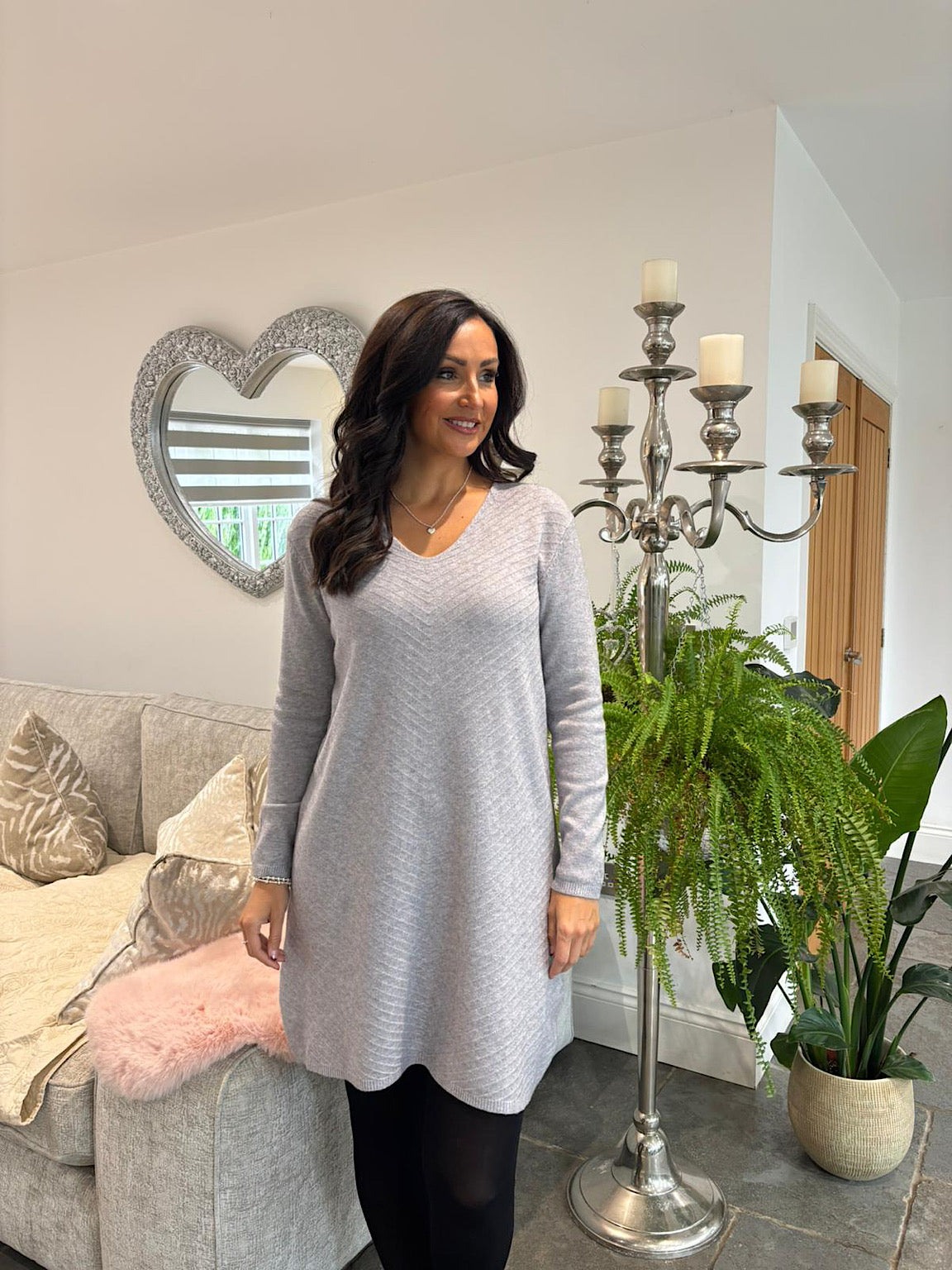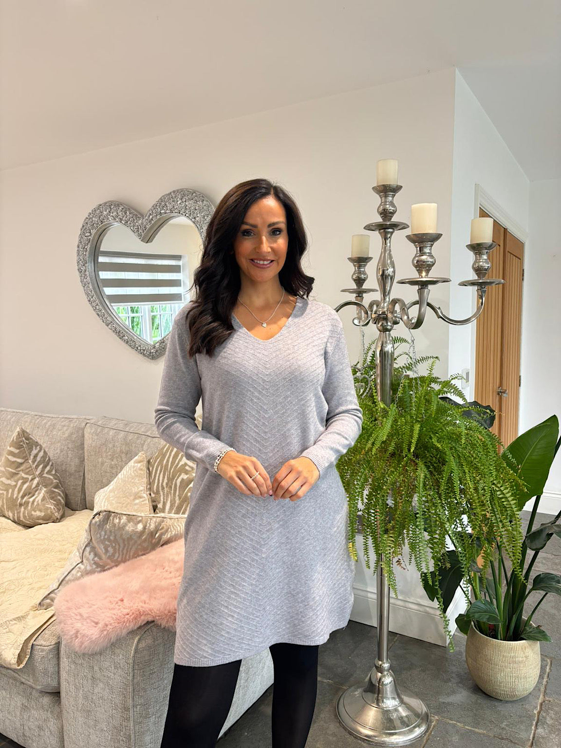 Experience comfort and style with the Chevron Knit Jumper Dress Kelly. Crafted from high-quality knit fabric, its chevron design adds a timeless, elegant touch. This cosy dress offers warmth and softness, making it perfect for cooler days while keeping you effortlessly chic.