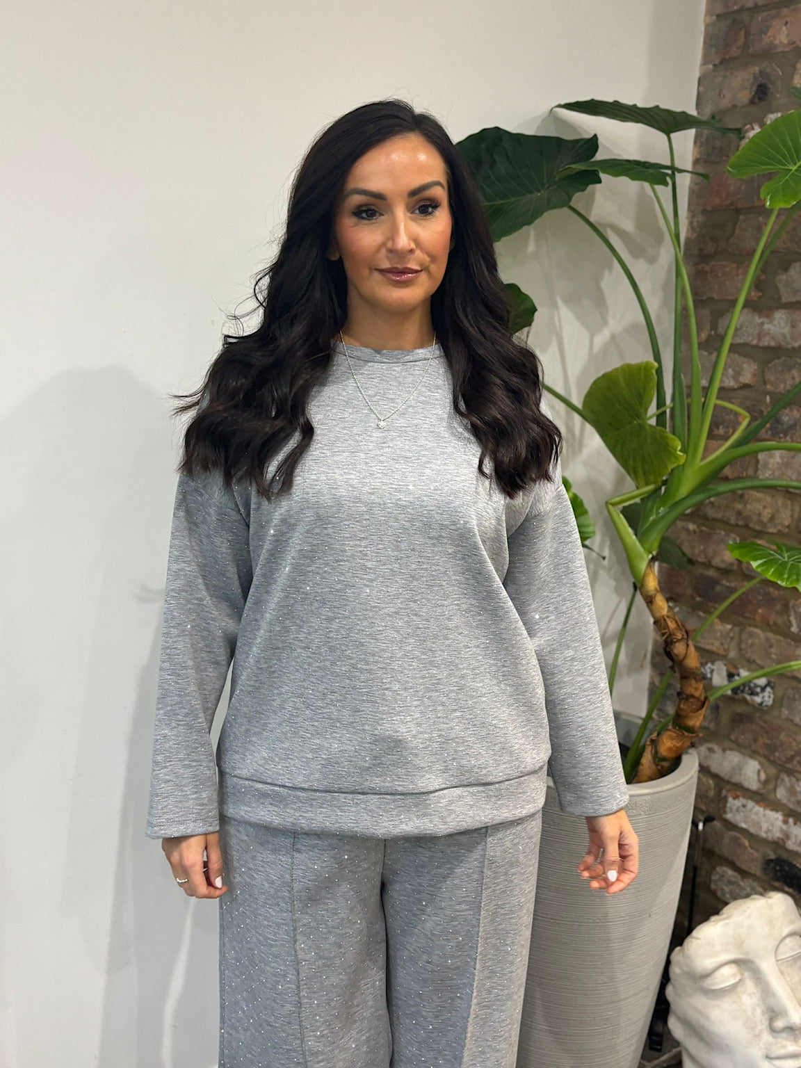 Discover effortless elegance with this Diamante Sweat Top Nina. Featuring delicate diamante embellishments scattered across the fabric, this piece brings a touch of sparkle to your casual wardrobe. With its cosy, relaxed fit inspired by our cherished Esme collection, it's the perfect choice for those moments when you want comfort without compromising on style. Layer it, dress it down, or wear it solo—this versatile top adapts to your mood and your day.