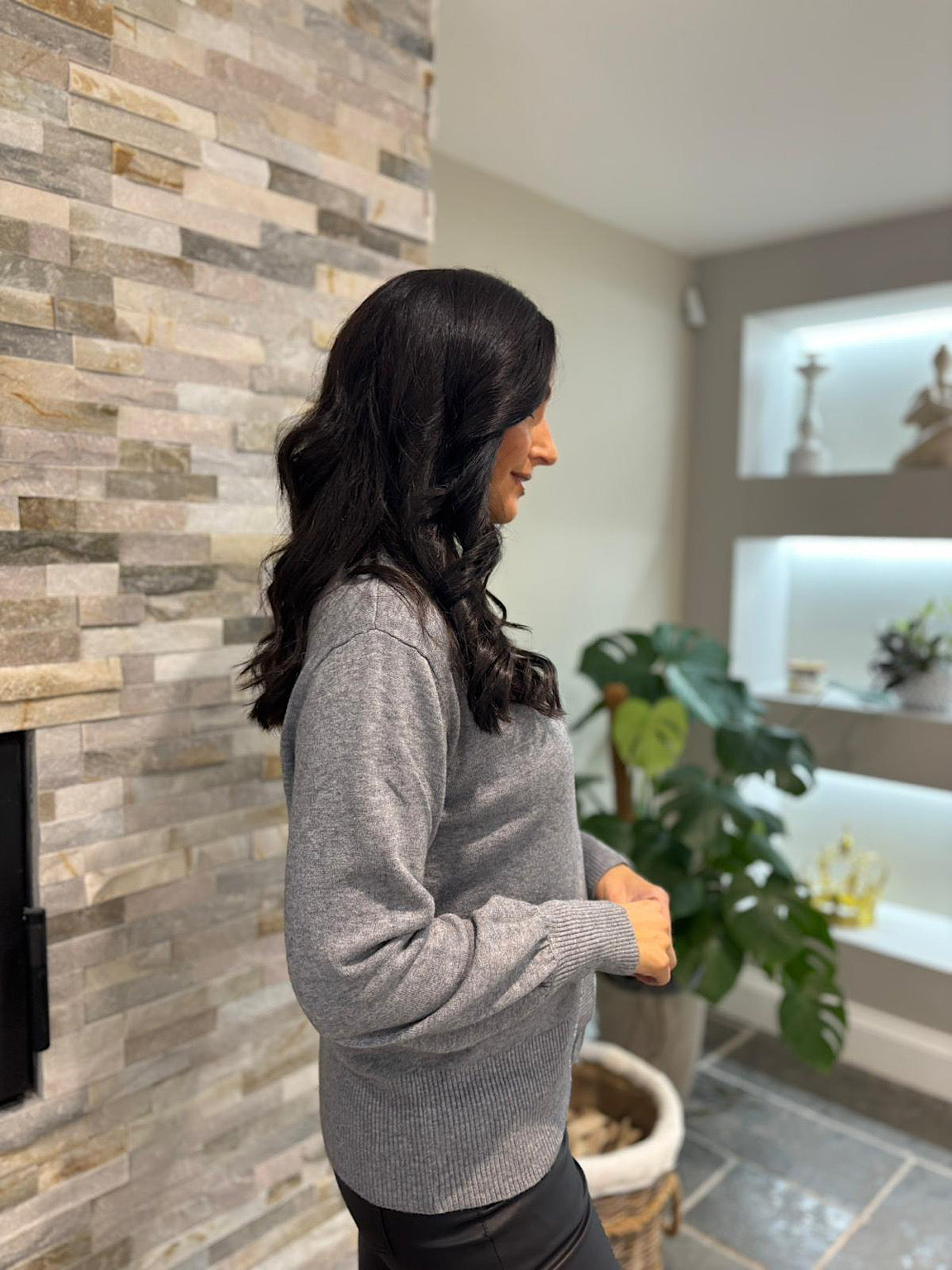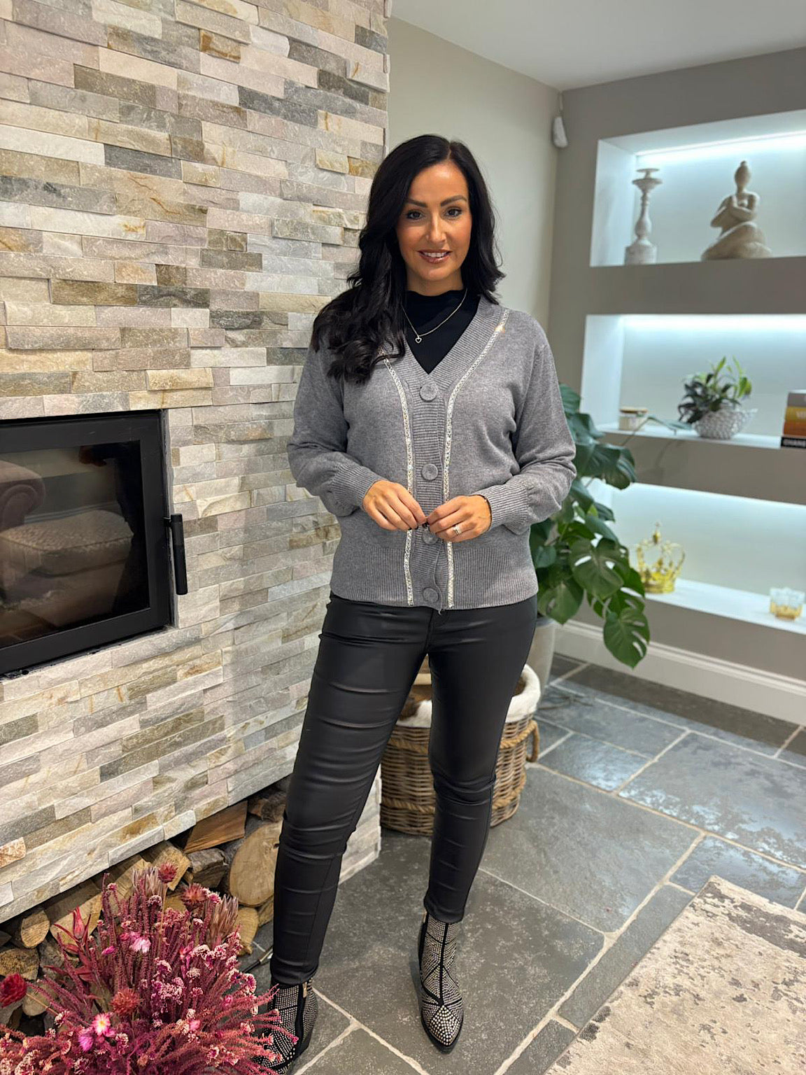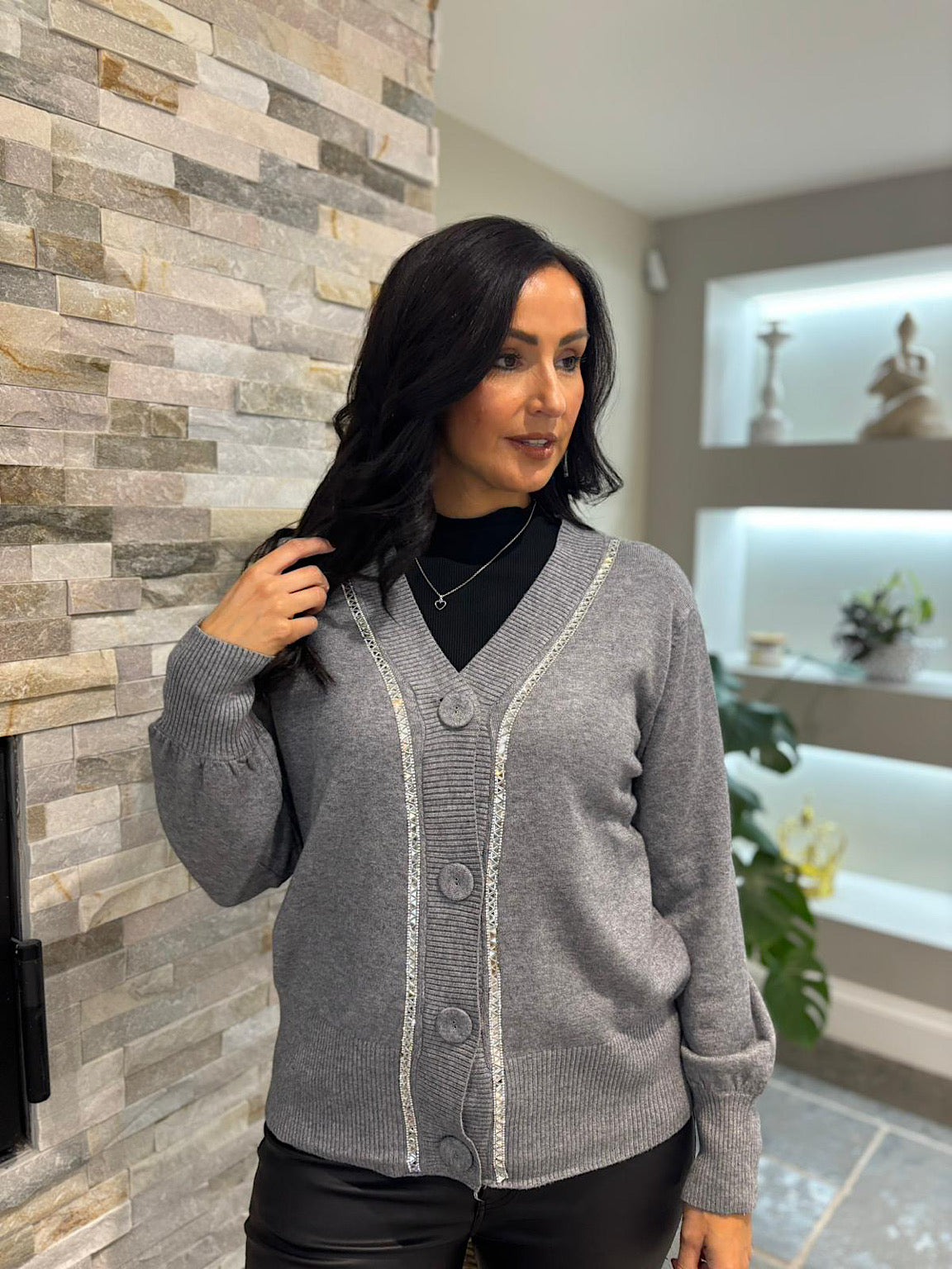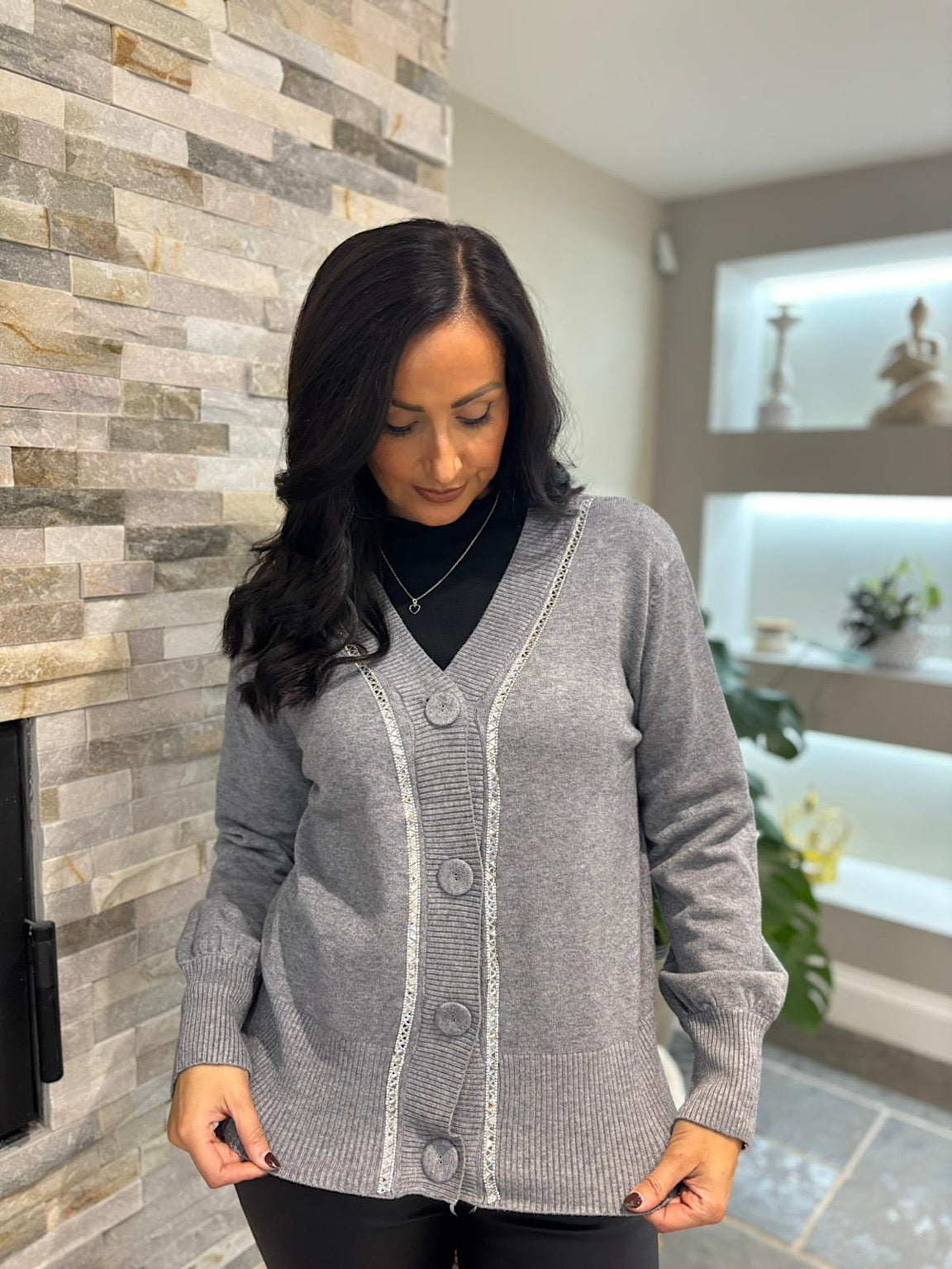 Grey Embellished Trim Cardi Gina