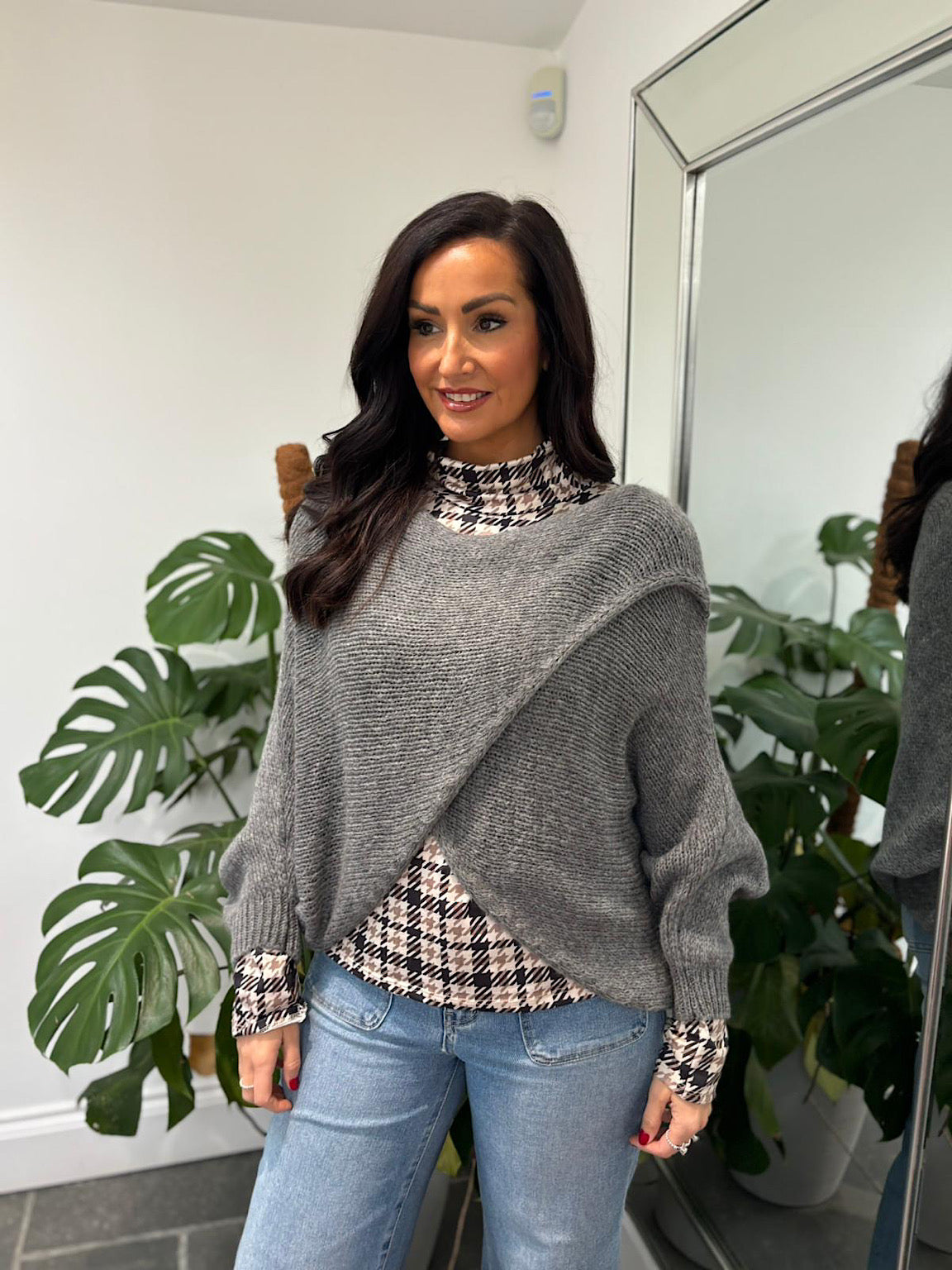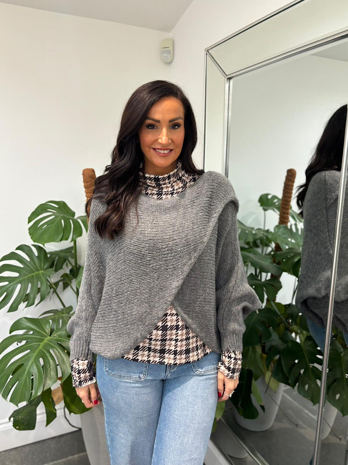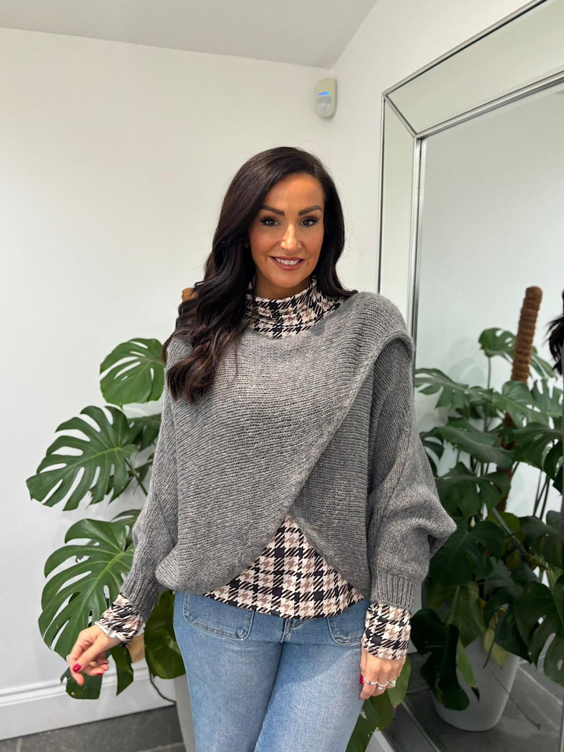 This knitted wrap jumper offers a refined style with its soft, comfortable fabric, making it an ideal choice for layering. Its elegant design enhances any outfit while providing warmth and versatility throughout the seasons.