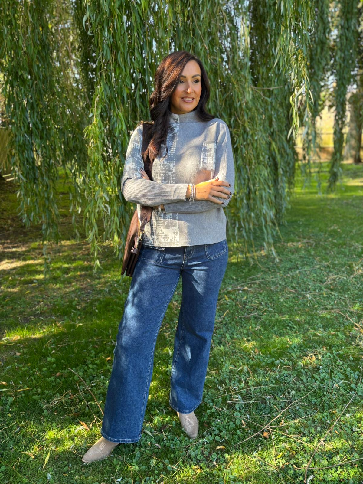 Styled with......> Denim Button Pocket Wide Leg Jeans