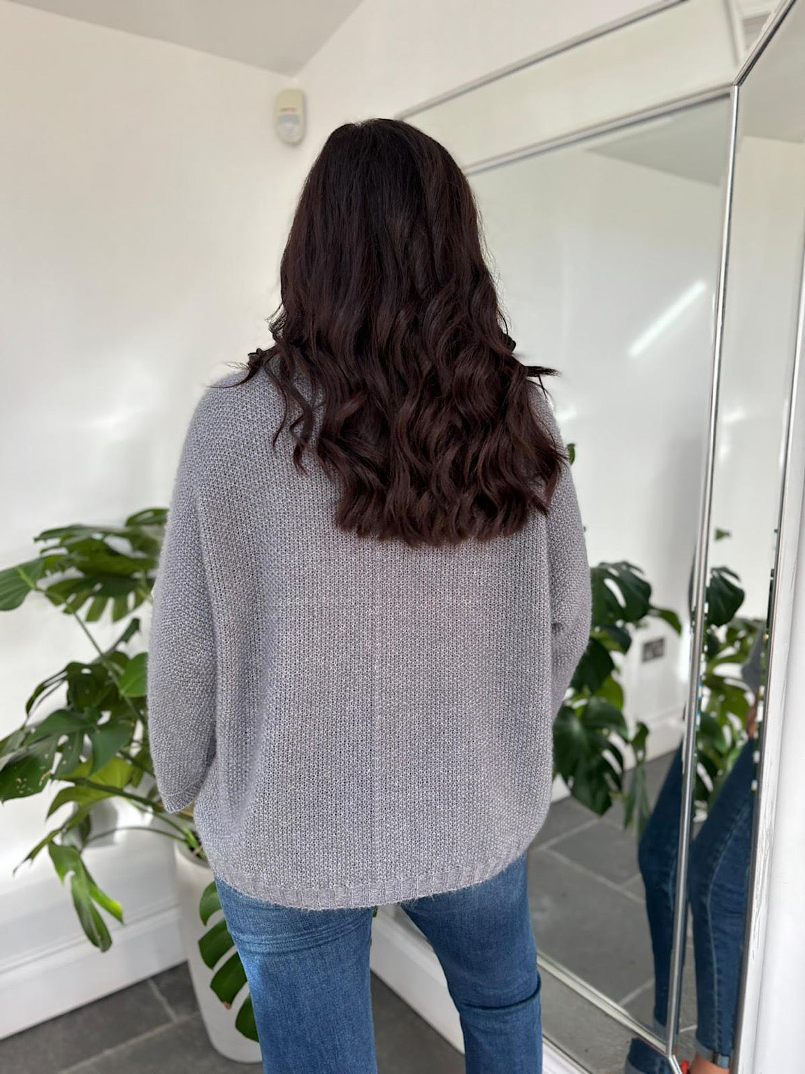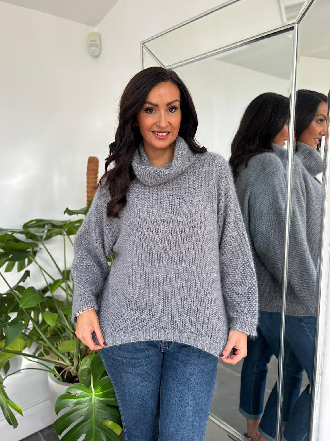 Grey Roll Neck Shimmer Knit Susan