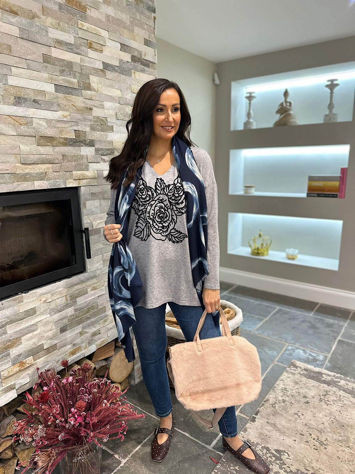 This Rose Design Knit Top Tilly features a high-quality knit fabric that ensures lasting comfort and durability. The beautifully embroidered rose on the front adds a delicate, stylish touch, making it a versatile piece for both casual and dressier occasions. Perfect for adding a subtle floral accent to your wardrobe.