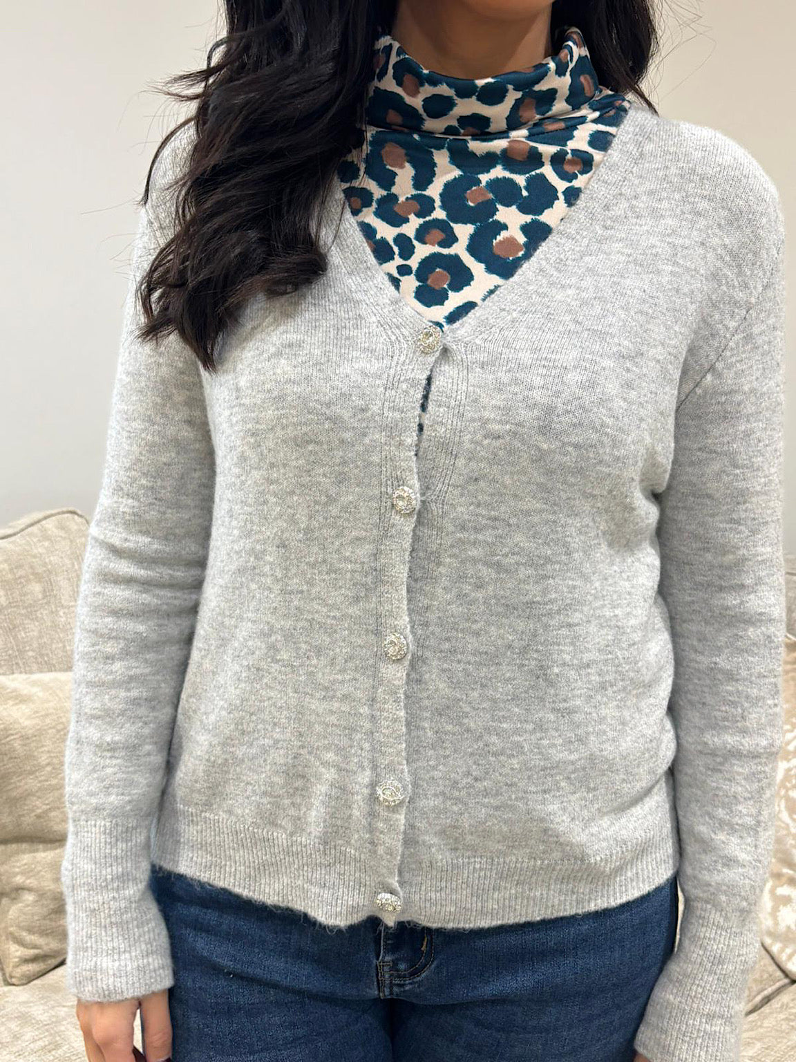 Embrace effortless elegance with the Soft Knit Cardigan Annalise. Crafted from a luxurious wool blend, this piece offers gentle warmth without sacrificing comfort. The fabric features subtle stretch, allowing natural movement throughout your day. Adorned with sparkling diamante buttons, it adds a touch of understated glamour to any outfit. Perfect for layering over dresses or pairing with your favourite trousers, this cardigan is a versatile wardrobe essential that celebrates both style and wearability.
