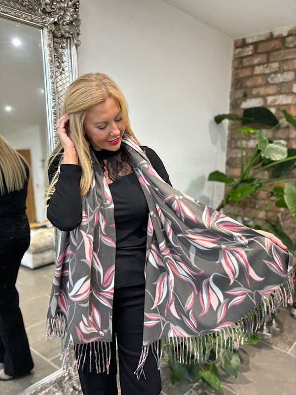 Grey Soft Touch Graphic Flower Scarf