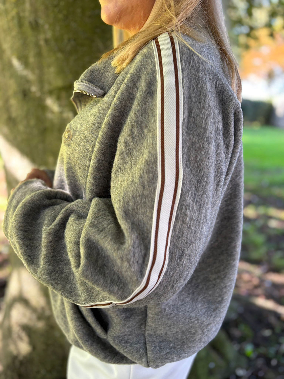 Grey Soft Touch Stripe Jacket Debbie'