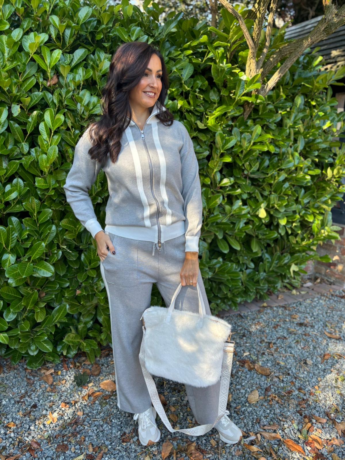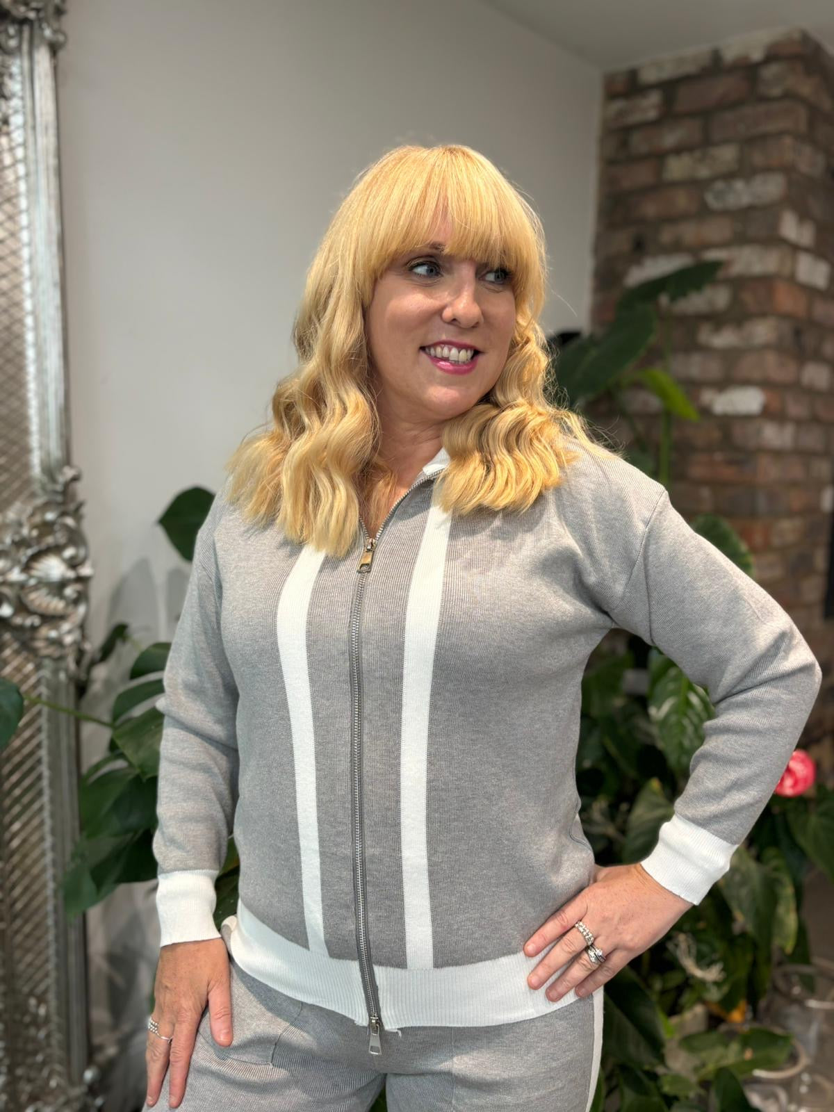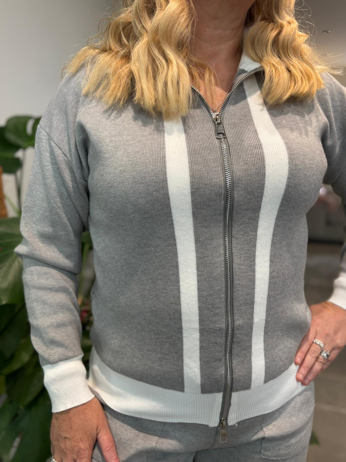 Elevate casual wear with the Striped Tracksuit Macie, featuring a zip-up knitted jacket for easy layering and elasticated drawstring trousers that ensure a tailored fit. This set combines comfort with refined style, perfect for relaxed yet polished everyday looks.